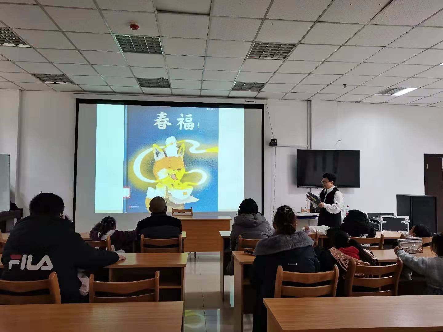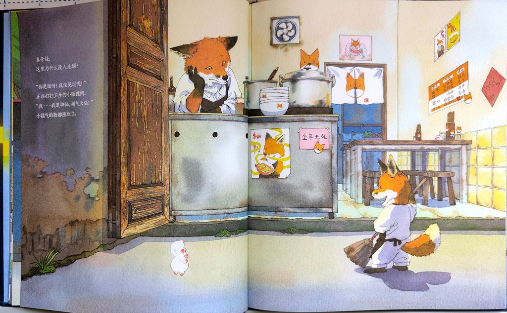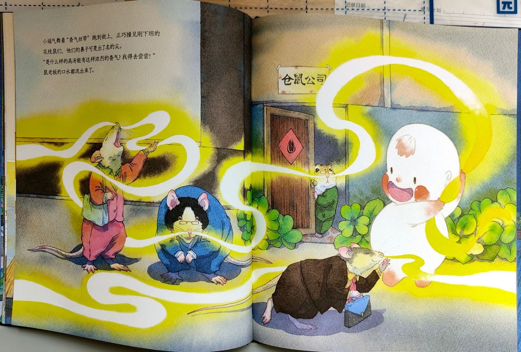 小童——《春福》 大头阿姨,首先为小朋友们分享了“元旦”的由来,然后讲了世界其他国家过元旦的有趣风俗。 一本有气味的书, 面馆的小主人小狐狸用一碗高汤熬制的汤面温暖了小福气的心,为了感谢小狐狸的善举,小福气使出全身力气把无形的“香气”拉到大街小巷,吸引街坊邻居纷纷到小狐狸面馆品尝“幸福”滋味的暖心奇幻故事。 失落的小福气遇到善良的小狐狸,他们彼此救赎,也解决了彼此的困境。小福气奇迹般地恢复了法力,而小狐狸的面馆也恢复了生意,原来助人的同时也是助己,这便是善良与善良碰撞出来的奇迹。 孩子们在热气腾腾的年味中传递好运,遇到春福,一定有福。在2022年的第一天,孩子们每个人亲自动手认领了属于自己的小福气......