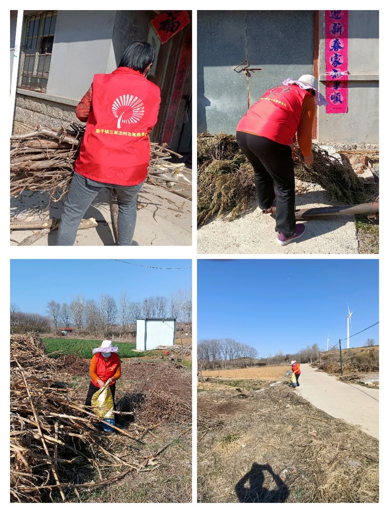 荫子镇三冢泊村志愿服务队2023年4月15日开展清洁村内卫生志愿服务活动