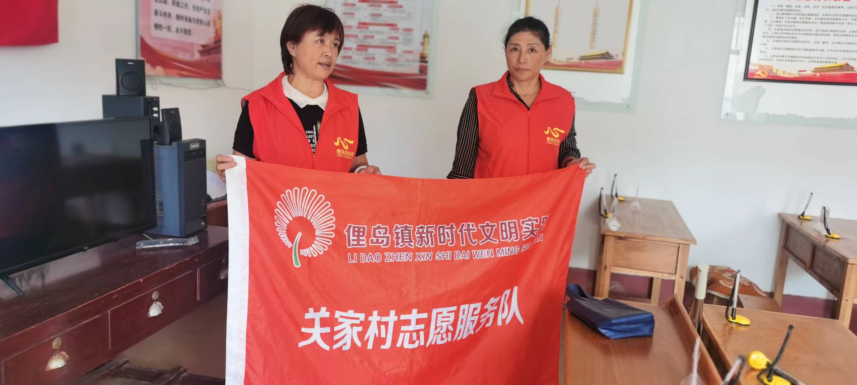俚岛镇关家村巾帼志愿服务队于2023年9月28日开展对新肘代文明实践站卫生清理志愿服务活动