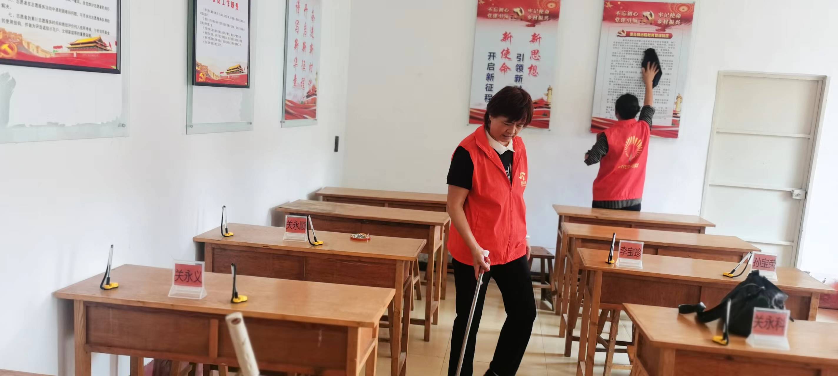 为了使党员与村民代表有一个干净整洁的学习环境,关家村巾帼志愿服务队于2023年9月28日08:00-08:30招募2名志愿者,开展对新时代文明实践站卫生清理志愿服务活动。