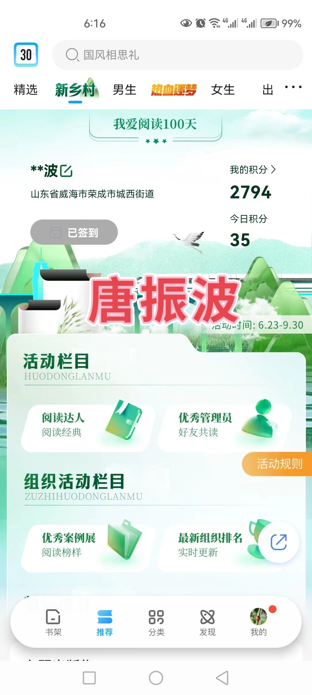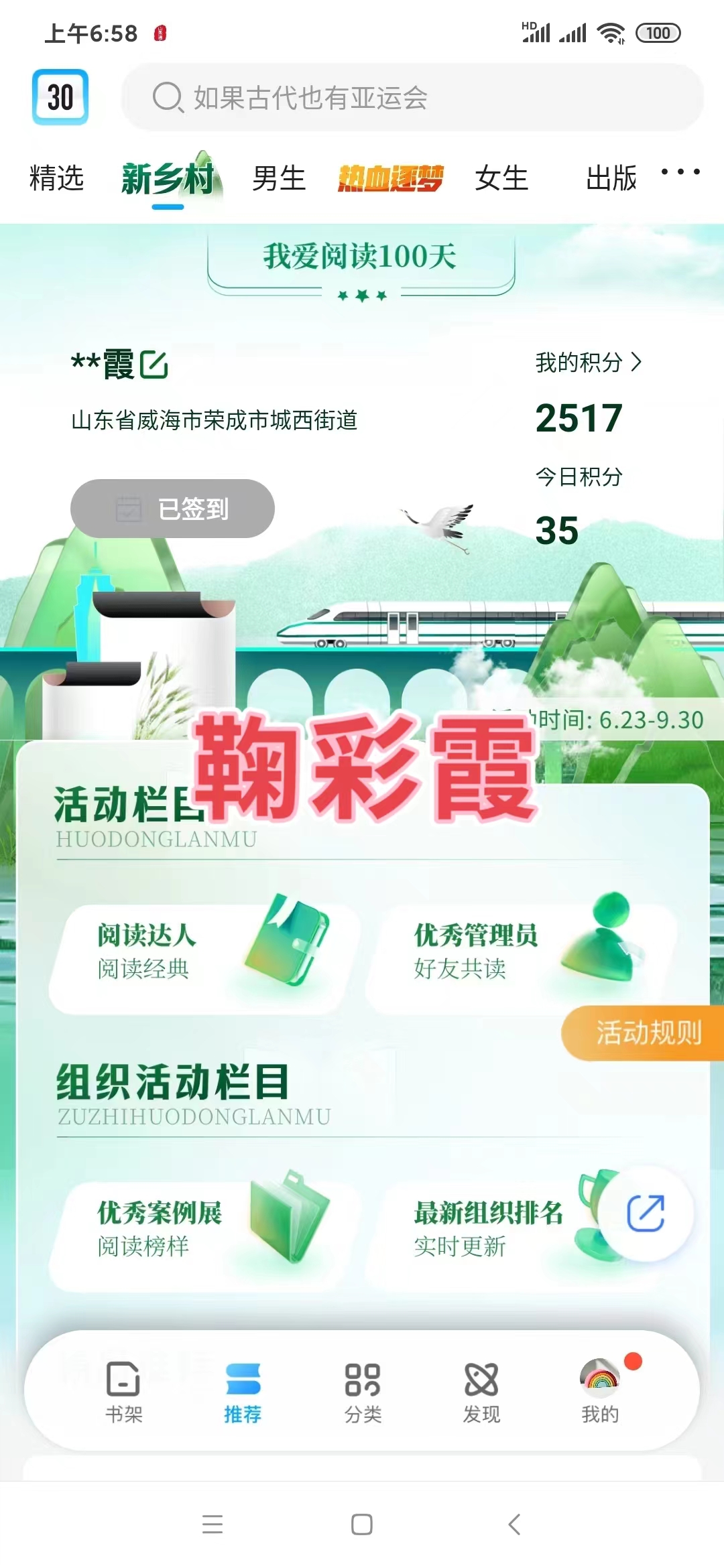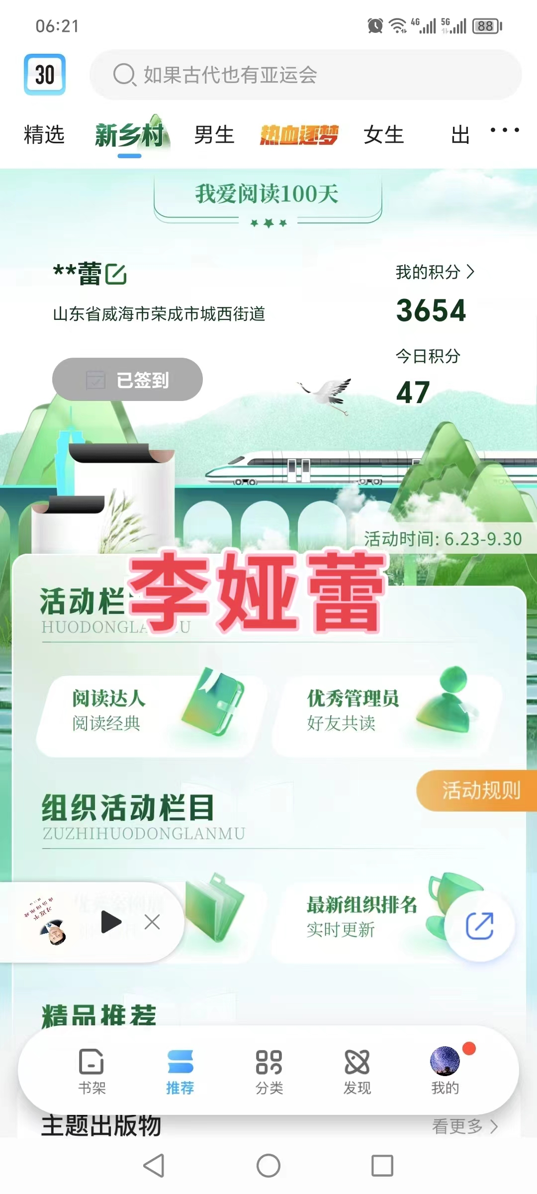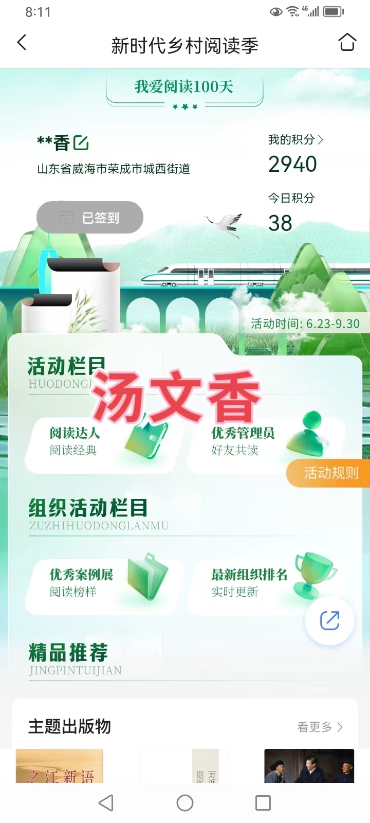 城西街道西环社区于2023年10月26日8:00--12:00开展2023年新时代乡村阅读季咪咕读书打卡活动,活动招募志愿者8人。通过此次活动,进一步深化“全民阅读·书香荣成”文化品牌建设,营造了更加浓厚的读书氛围。