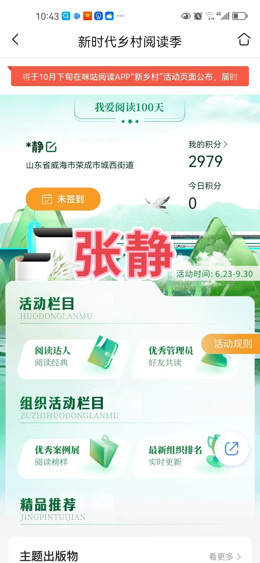 西环社区于10月26日开展2023年新时代乡村阅读季咪咕读书打卡活动
