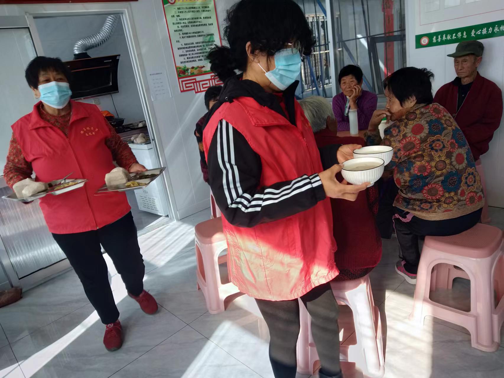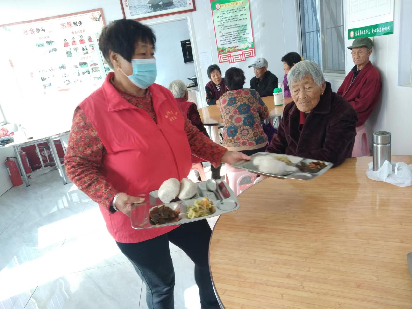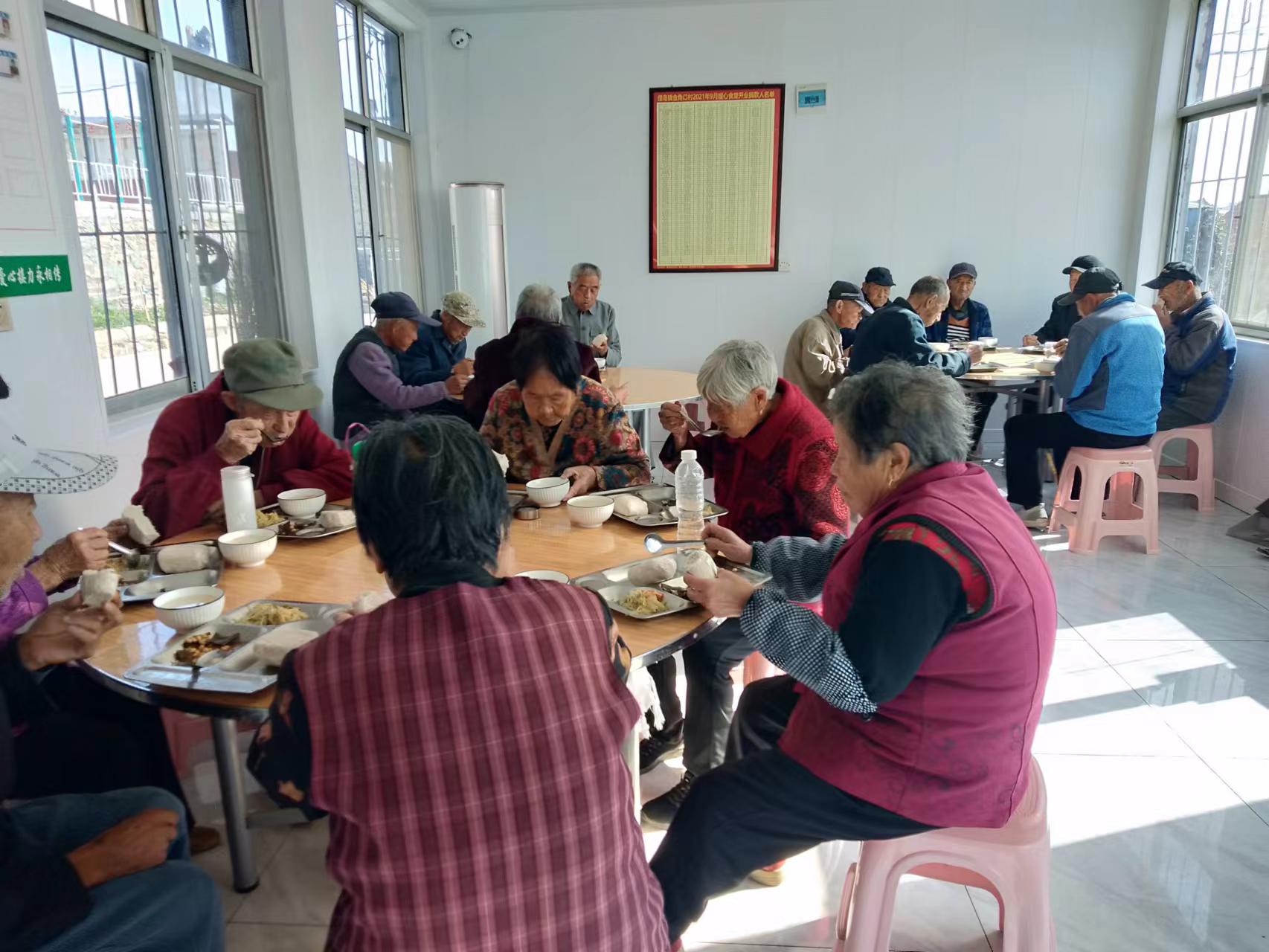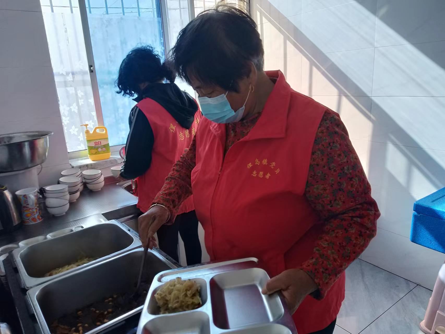 为了给老人送去关爱,俚岛镇金角口村巾帼志愿服务队招募2名志愿者,2023年11月6日10: 00-12:00在村暖心食堂负责给老人领饭,发饭,提高老人用餐幸福感。有了志愿者的服务老人用餐非常愉快。