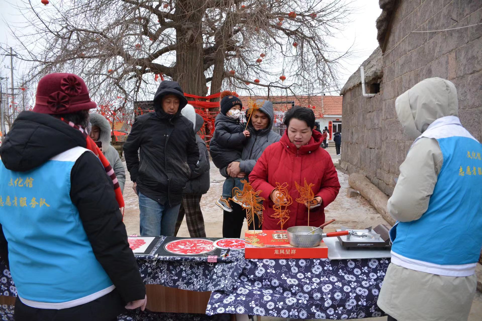 为共迎新春,活跃群众精神生活,展现群众龙马精神与乡村建设新风貌,荣成市文旅部门精心打造了2024山东荣成渠隔古村村晚,志愿者们第一时间来到百年古村渠隔现场开展志愿服务。该活动包含民俗展演、文艺演出、非遗大集、喜迎元宵、一桌最海鲜五大板块内容。向全国观众展现荣成古村美丽景象及人民小康致富的美好画卷。