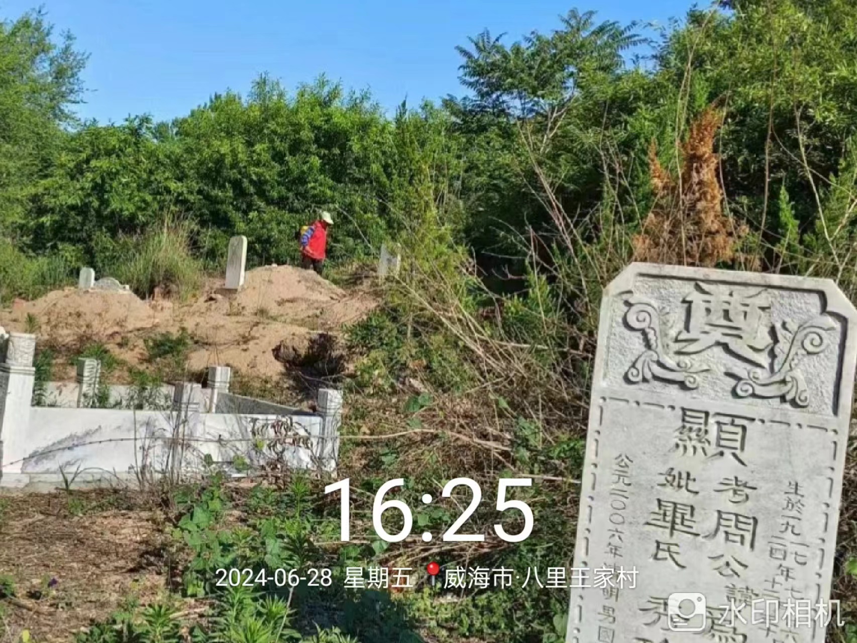 东山街道八里王家村志愿服务队2024年6月28日开展墓地打除草剂志愿服务活动