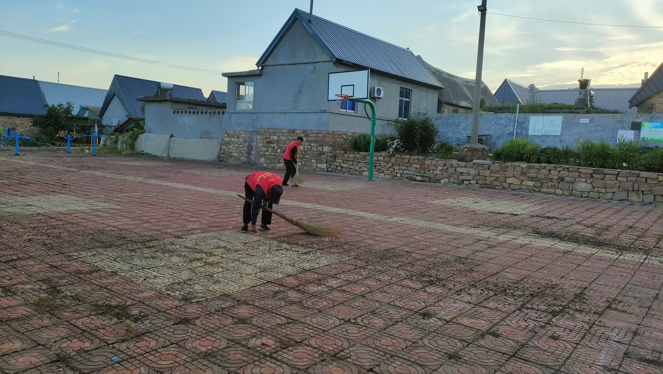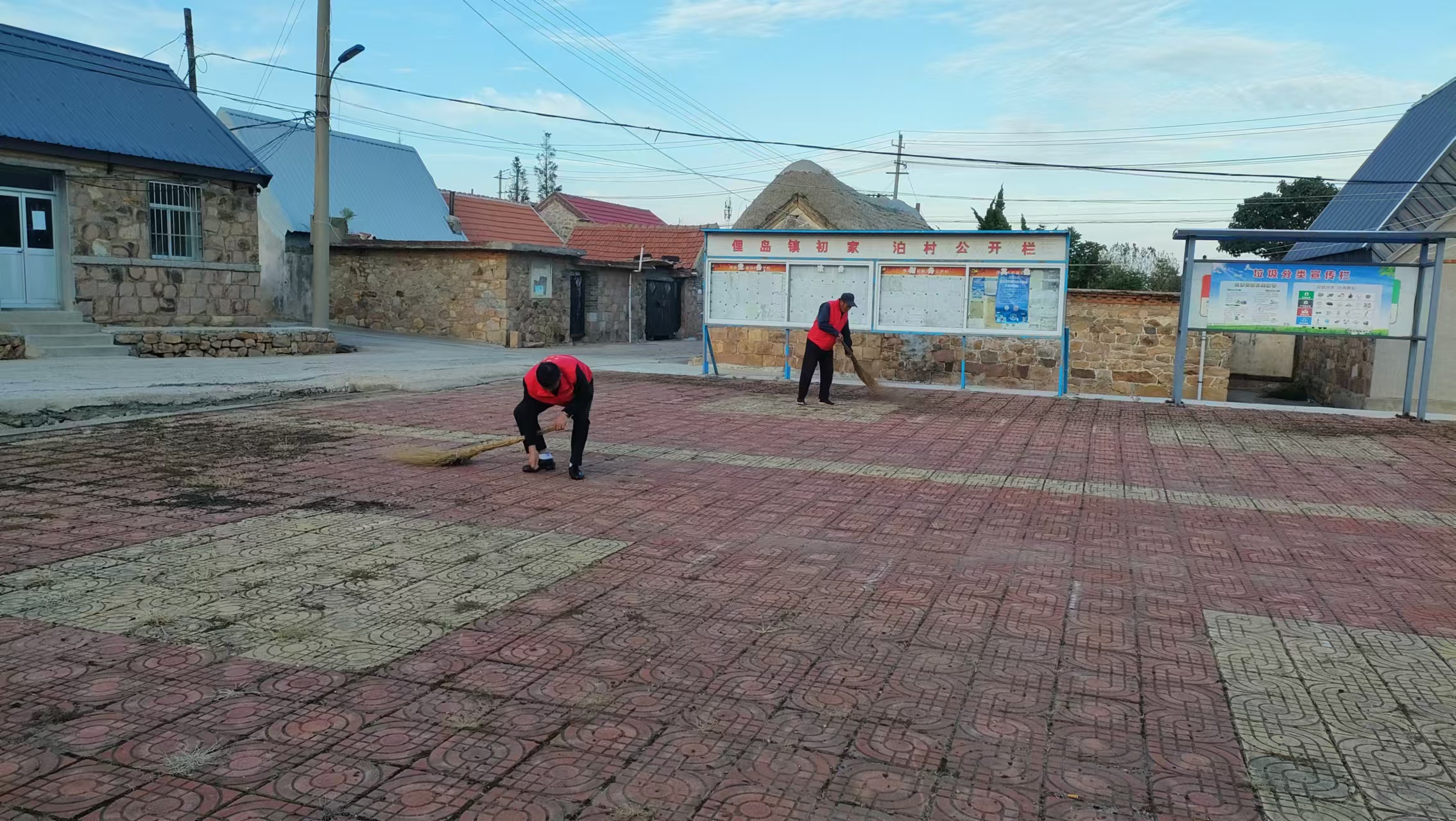 俚岛镇初家泊村志愿服务队开展收拾文体广场卫生志愿服务活动(10.12)
