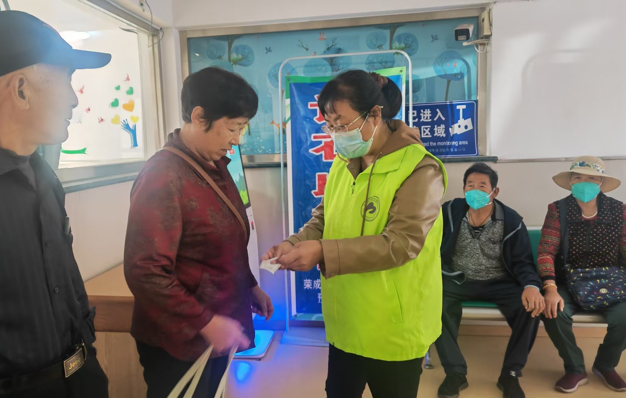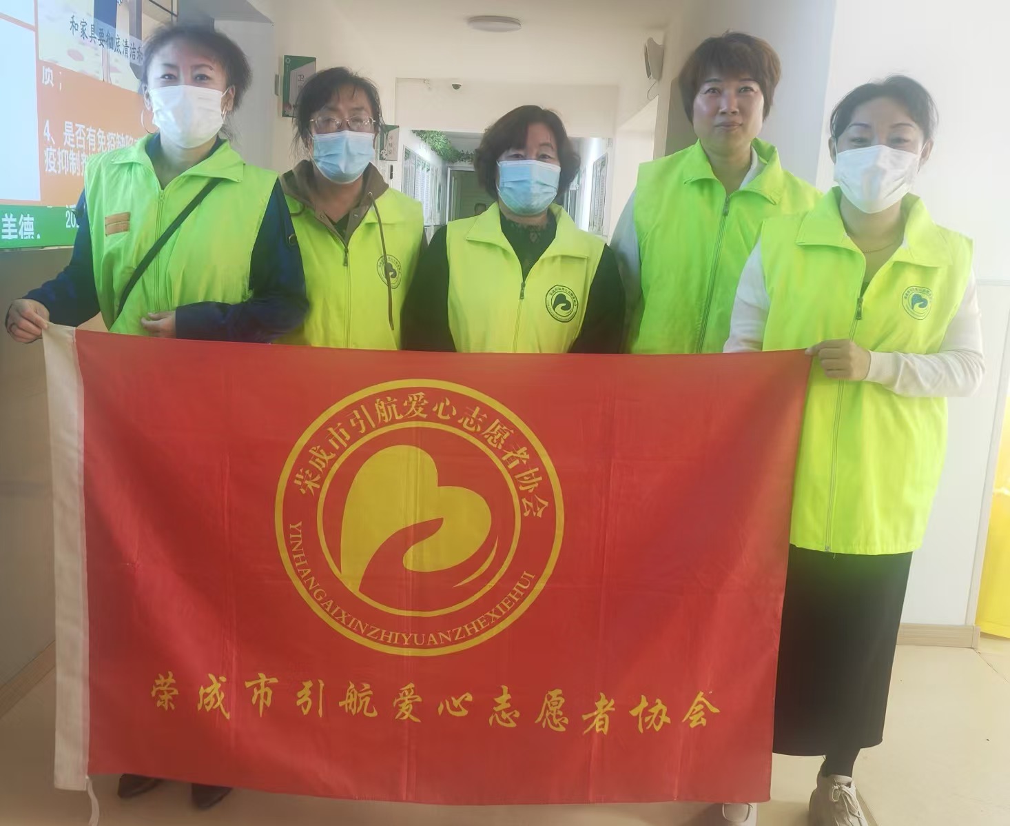 应人和医院邀请石岛爱心志愿服务团队协助为儿童打预防针,因医院医护人员少工作量大,招募志愿者协助填写疫苗接种表,引导维持秩序等。