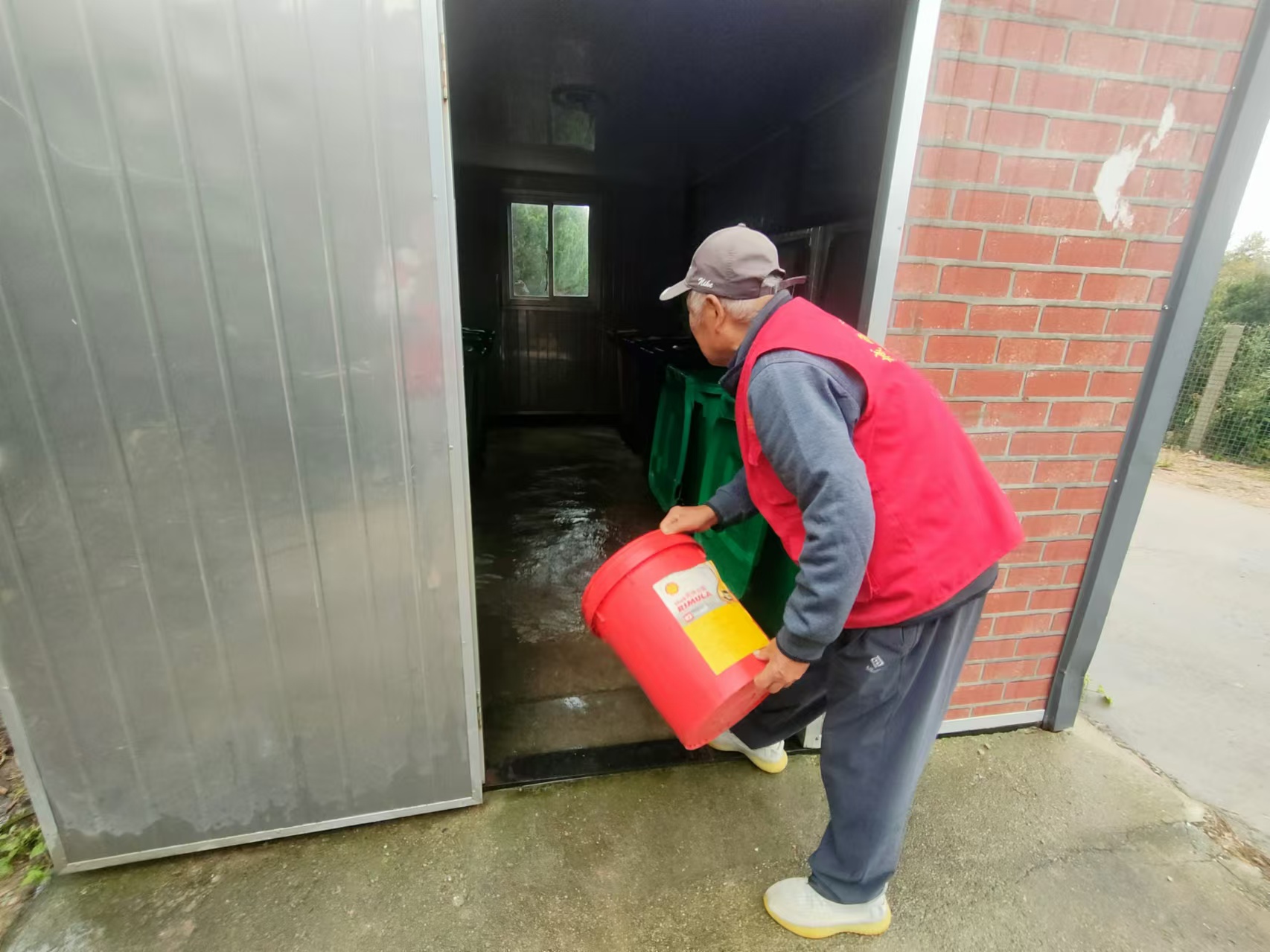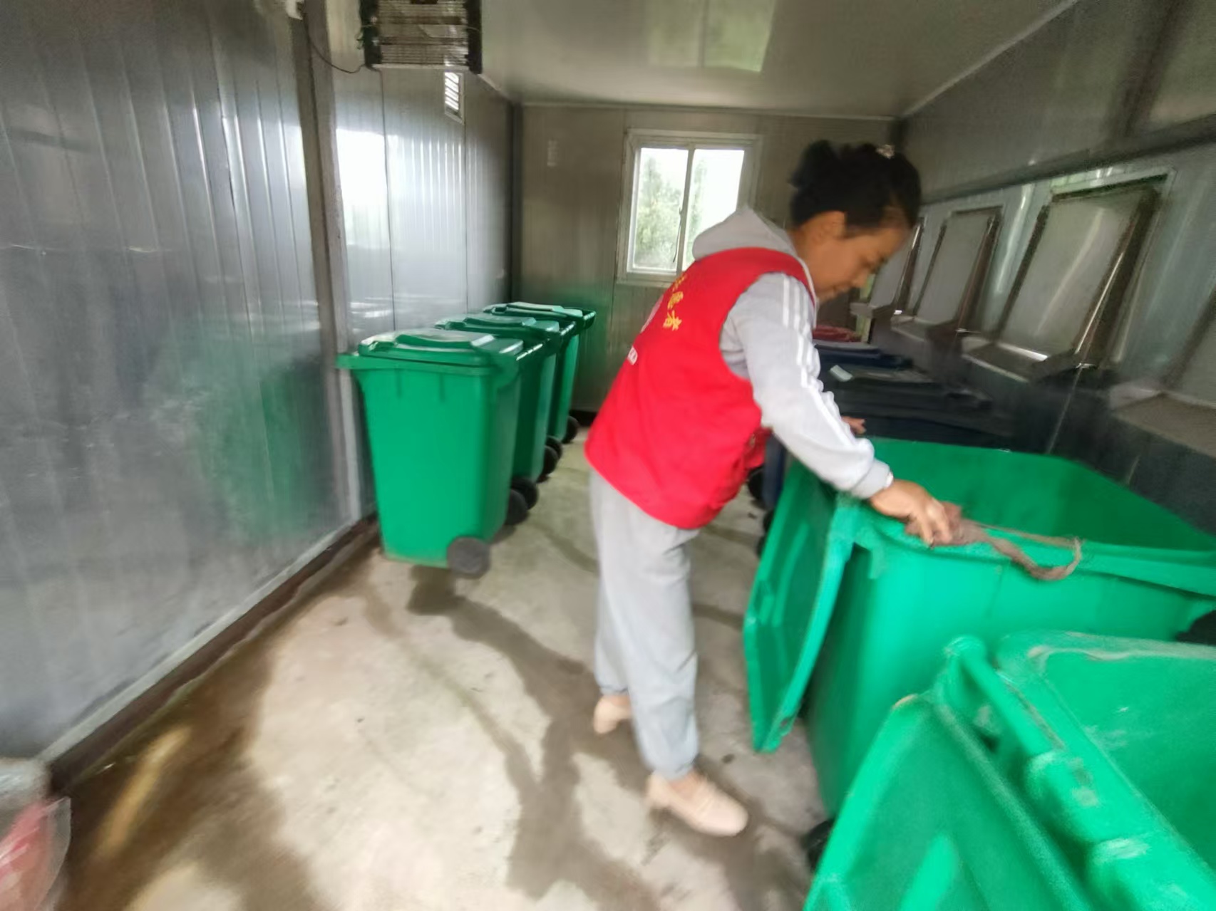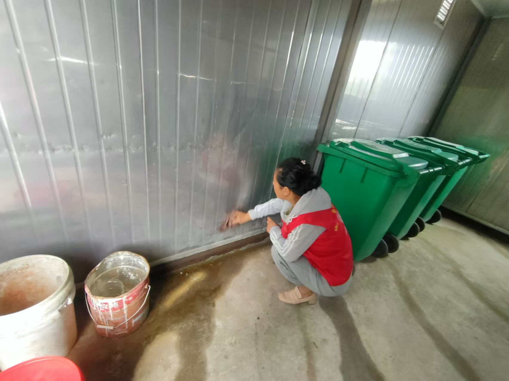 活动中,志愿者不怕脏不怕累,把垃圾房垃圾桶刷的干干净净,给村民提供一个好的居住环境