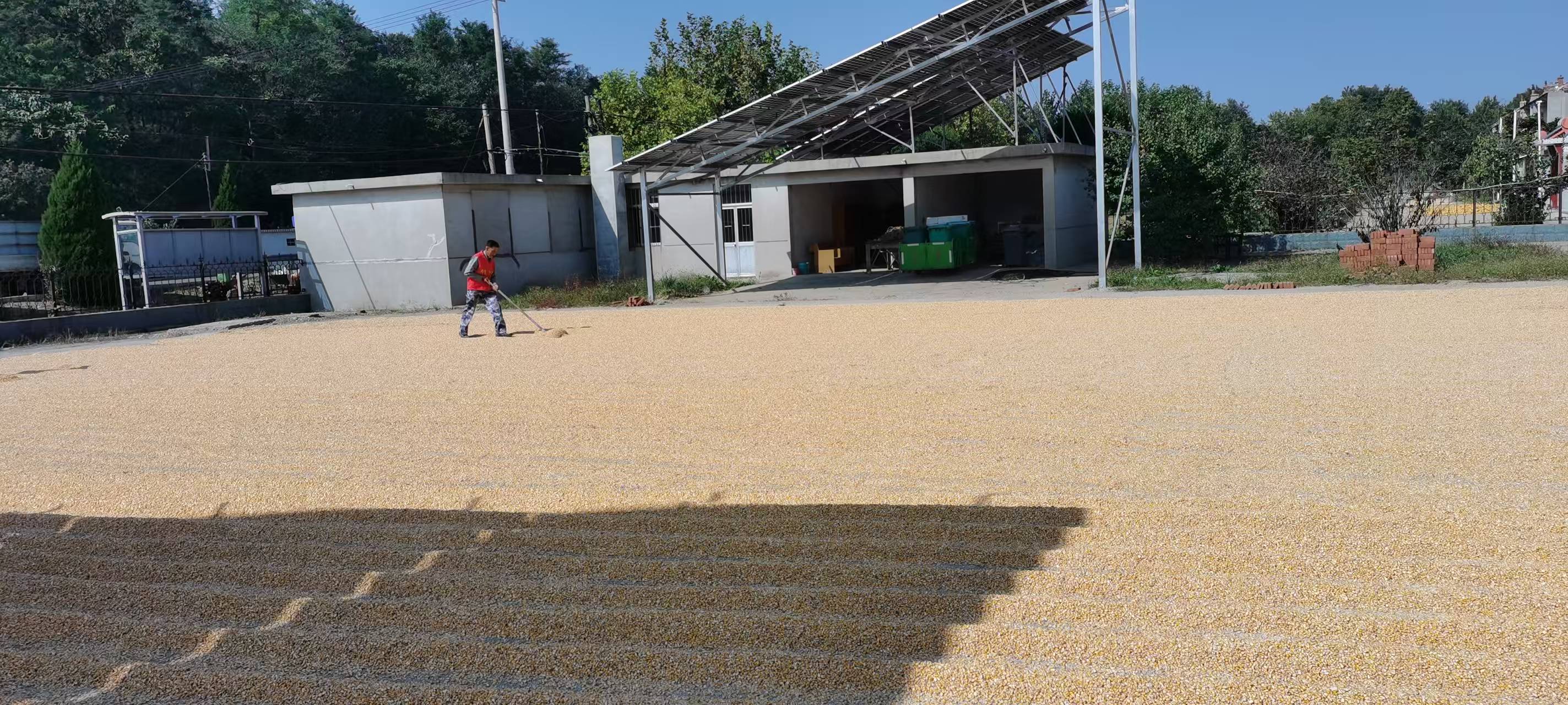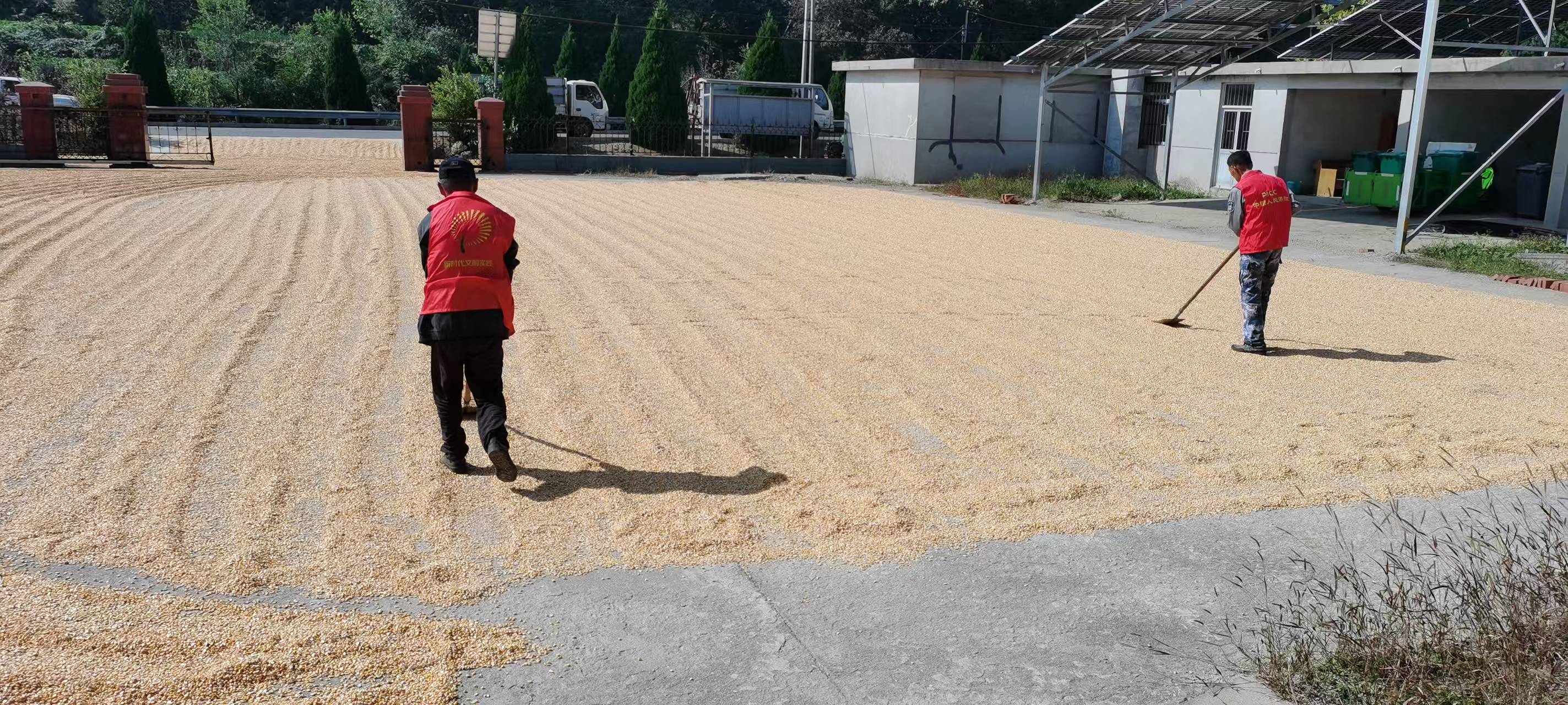 俚岛镇香山前村党员先锋志愿服务队2024年10月14日开展晒合作社玉米志愿服务