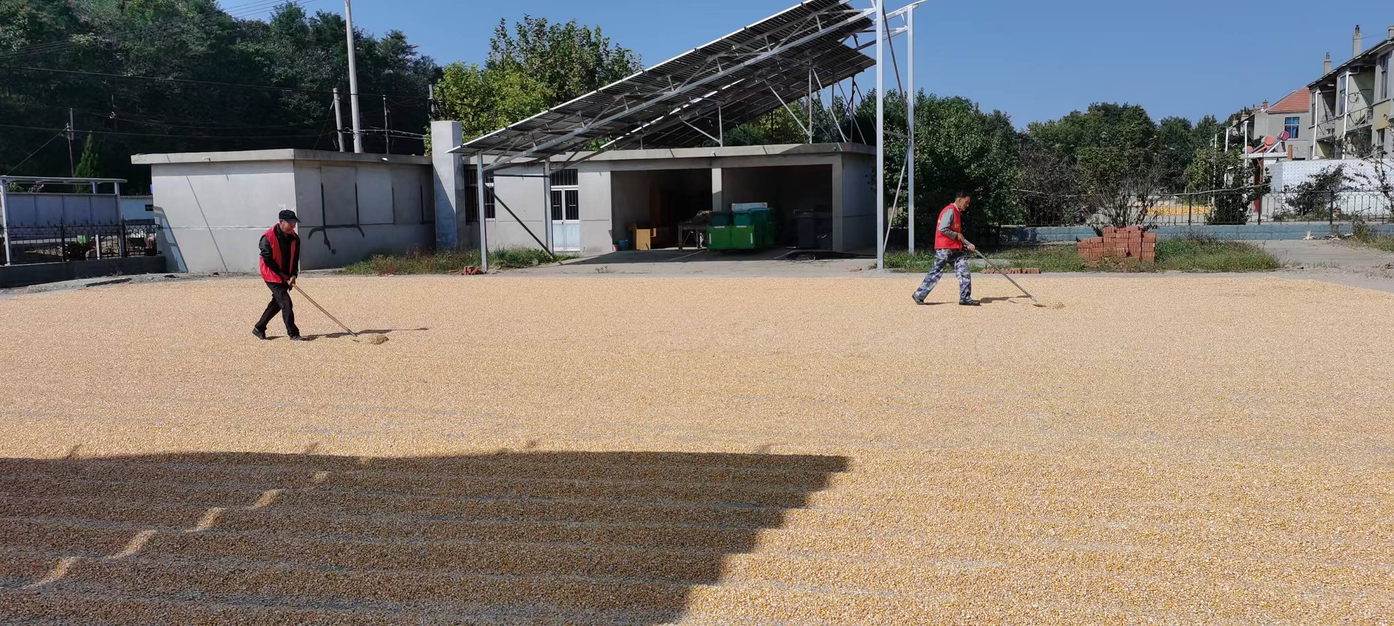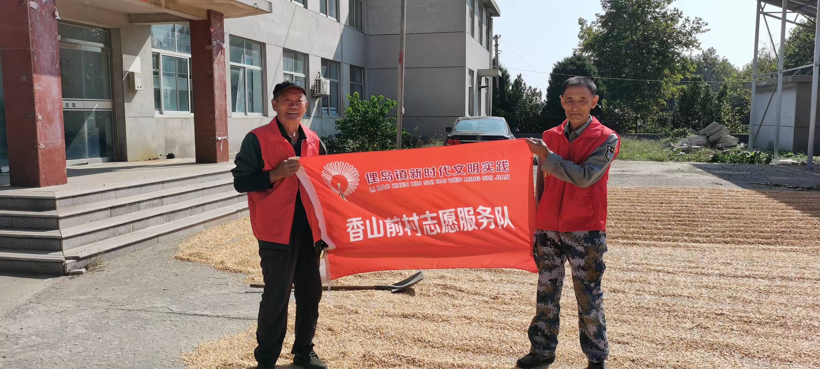俚岛镇香山前村党员先锋志愿服务队2024年10月15日开展晒合作社玉米志愿服务