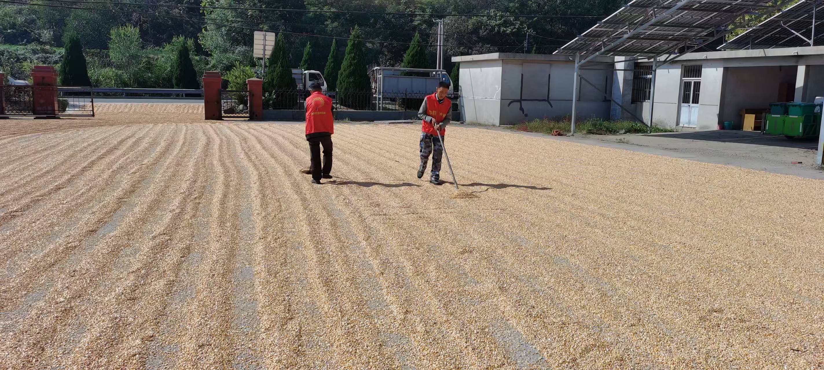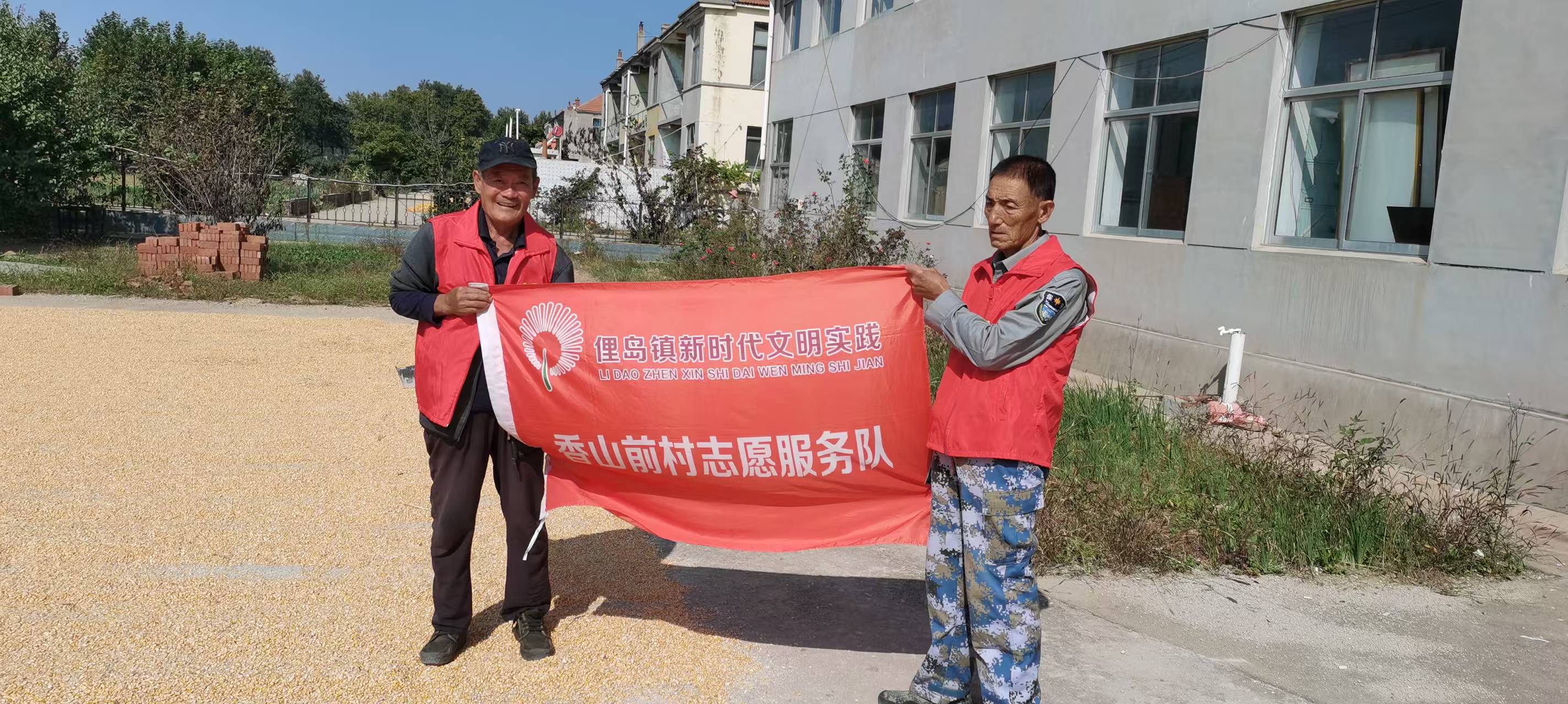 俚岛镇香山前村党员先锋志愿服务队2024年10月15日开展晒合作社玉米志愿服务
