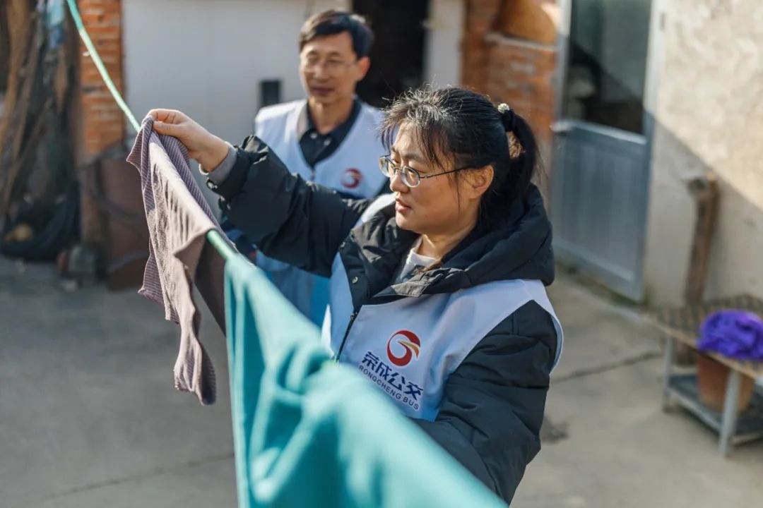 志愿者们来到大疃镇周家庄村王爷爷和于奶奶家中,与老两口儿唠家常,叮嘱老人要多注意身体,保持一个乐观的生活态度,平时要格外注意日常用水用电、煤气的安全,并同老人分享乘坐公交车出行指南。随后志愿者们帮助老人规整物品、晾晒衣服、打扫卫生、清理垃圾等。大家分工有序进行,将平常老人打扫不到的地方清扫干净,将家中高处落灰的地方擦干净,经过一番打扫,家里整体面貌焕然一新。 “岁数大了,腿脚儿不争气哟,干活都干不利索,多亏了这些志愿者们特地到我们家里来,给帮忙收拾卫生,还陪我们老两口儿聊天谈心,真是太暖心了!”王爷爷感动地说。 近年来,荣成公交集团积极发挥国有企业的公益属性和社会担当,大力弘扬尊老敬老传统美德,优化老年人乘车优惠政策,常态化开展文明实践志愿服务活动,让敬老文明在公交阵线上如花绽放。