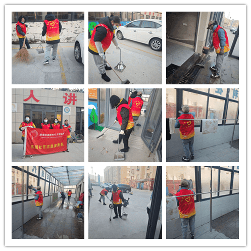 玄镇社区于2024年1月7日下午13点至16点组织志愿者4名收拾社区信用一条街卫生志愿活动