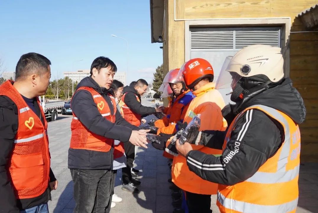 当冬日的第一缕阳光还未完全驱散寒意,环卫工人和园林工人早已穿梭在城市的街道、公园,清扫垃圾、修剪枝条,用双手维护着城市的秩序与生机。为了帮助从事室外作业的他们抵御严寒,文明实践志愿者们用石岛集团提供的爱心资金专门购置了600多副御寒手套。这些手套,不仅为他们提供了实实在在的温暖,更传递了社会对他们工作的认可与尊重。