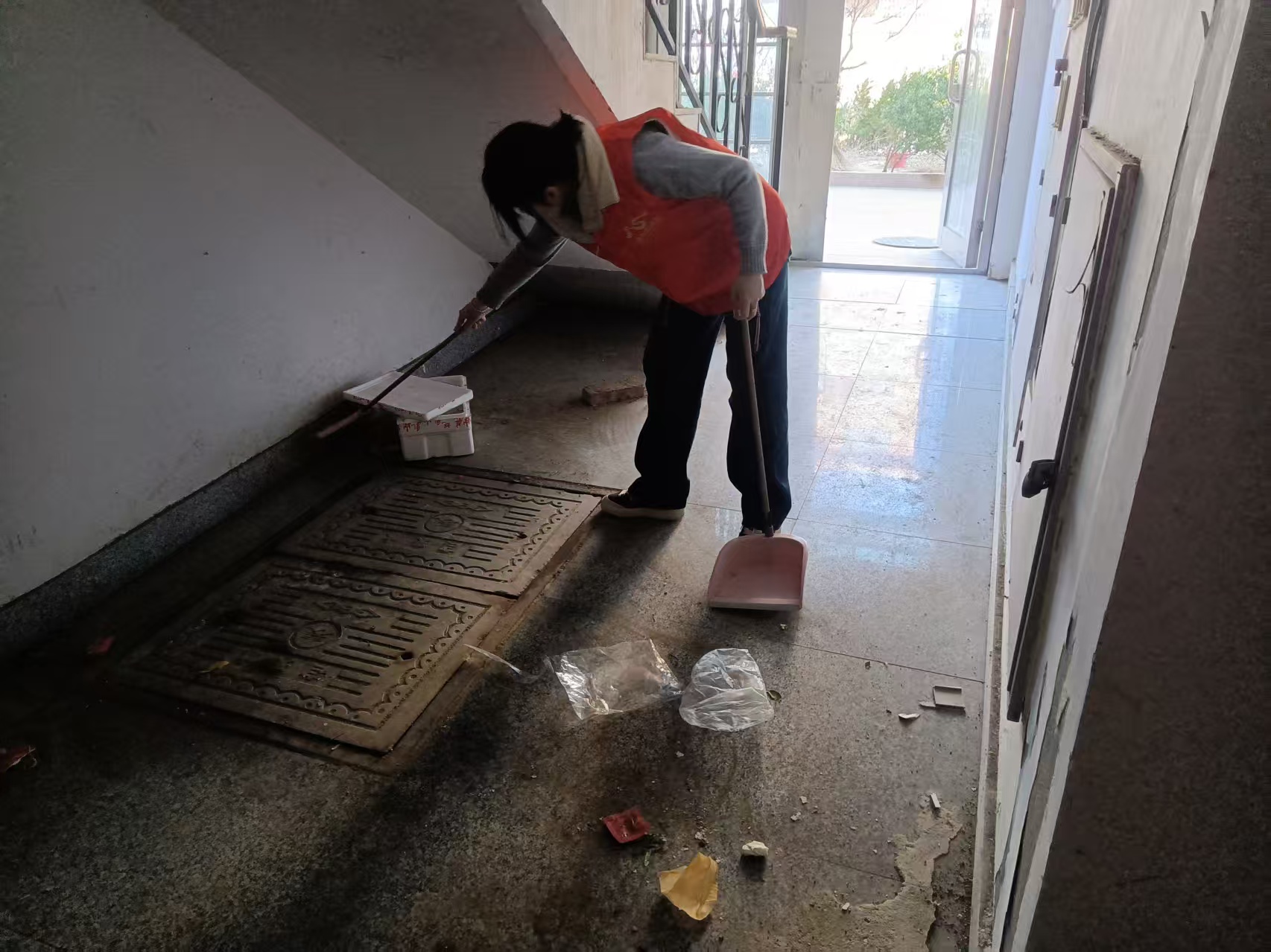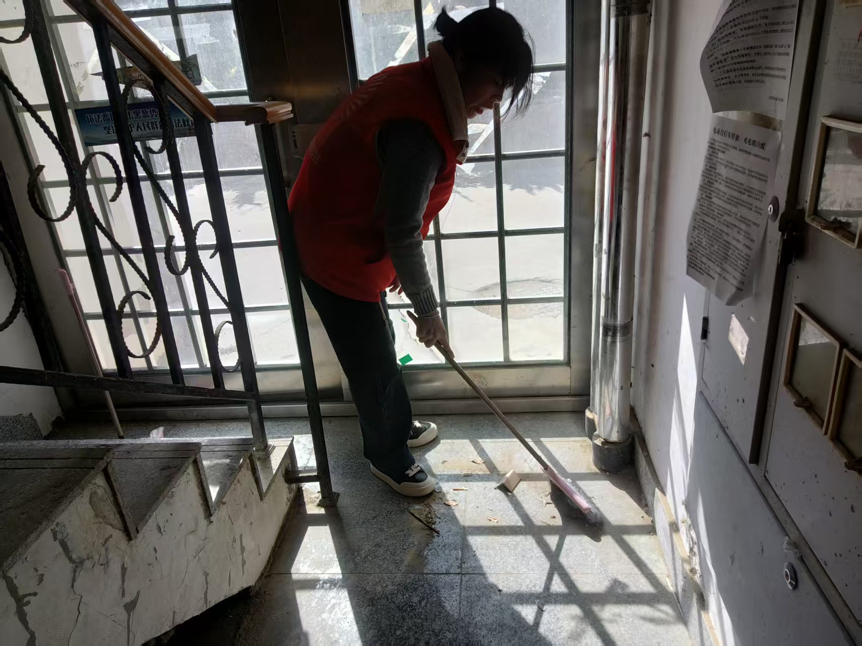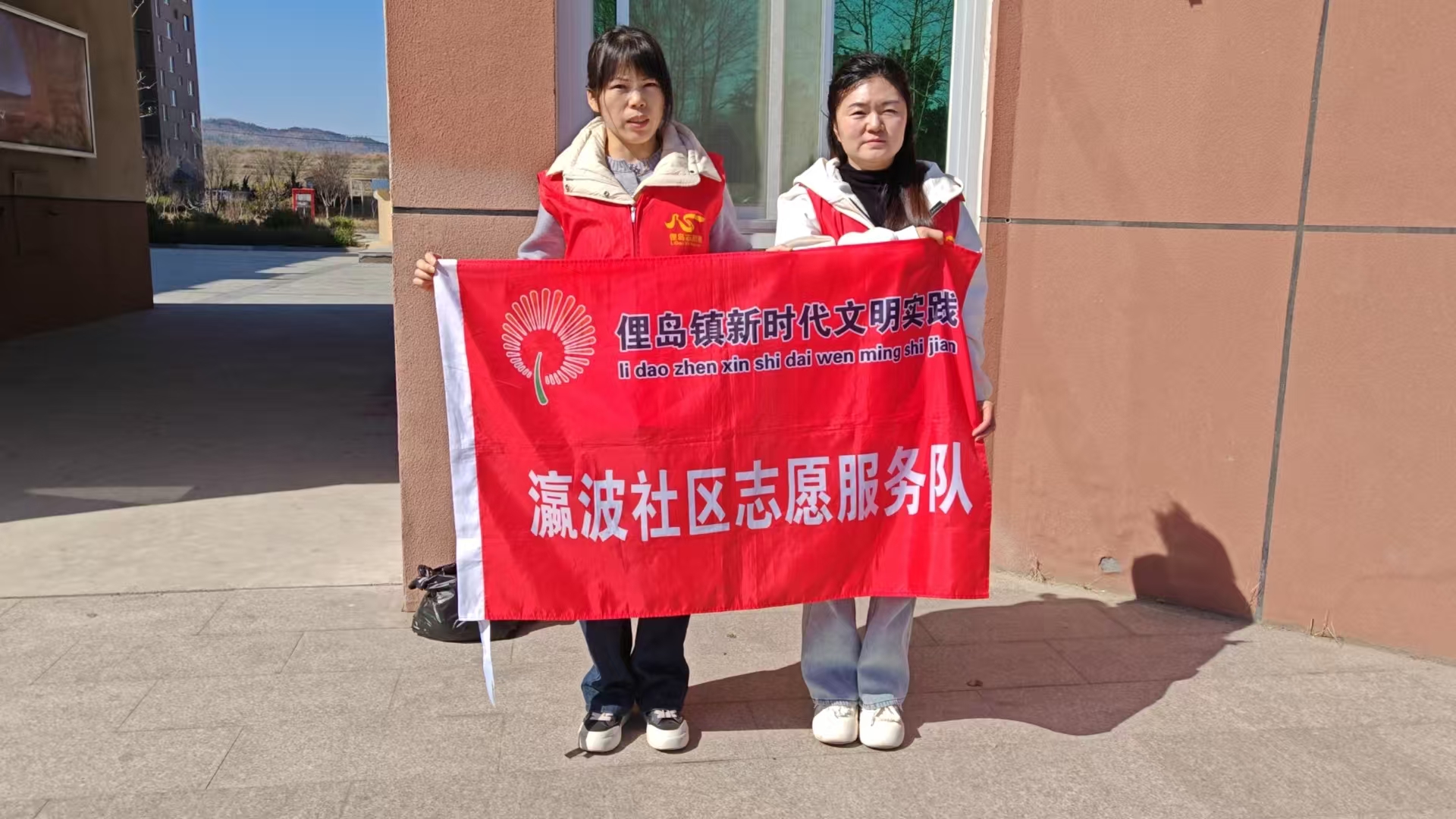 俚岛镇瀛波社区服务队3月21日来到避风港小区参与收拾卫生志愿活动