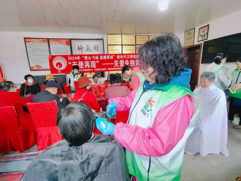 为了让失独家庭老人晚年生活幸福感受到社会对她们的关爱和尊敬,他们对未来的生活充满希望,4月24日和风社工志愿服务队组织崖头和城西街道部分失独家庭15户走出家门到韦德山脚下的夏庄镇战家村体验大自然的美好风光,观摩战家村民俗展馆,蒙古包体验。志愿者为老人理发量血压。观看志愿者即兴表演小节目。最后志愿者为老人们发放精心准备的礼物。进行“向阳而生 心灵放松”的舒心之旅。