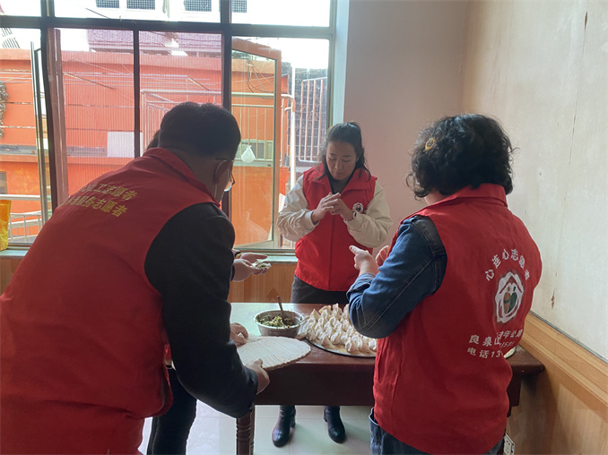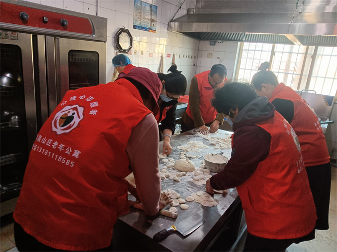 为弘扬中华民族尊老、敬老、爱老的传统美德。11月30日心连心志愿服务团组织14名志愿者走进斥山良泉老年公寓为80多名老人进行常态志愿服务活动,帮厨,包饺子,陪伴聊天等活动。保证老人每周吃上饺子。
