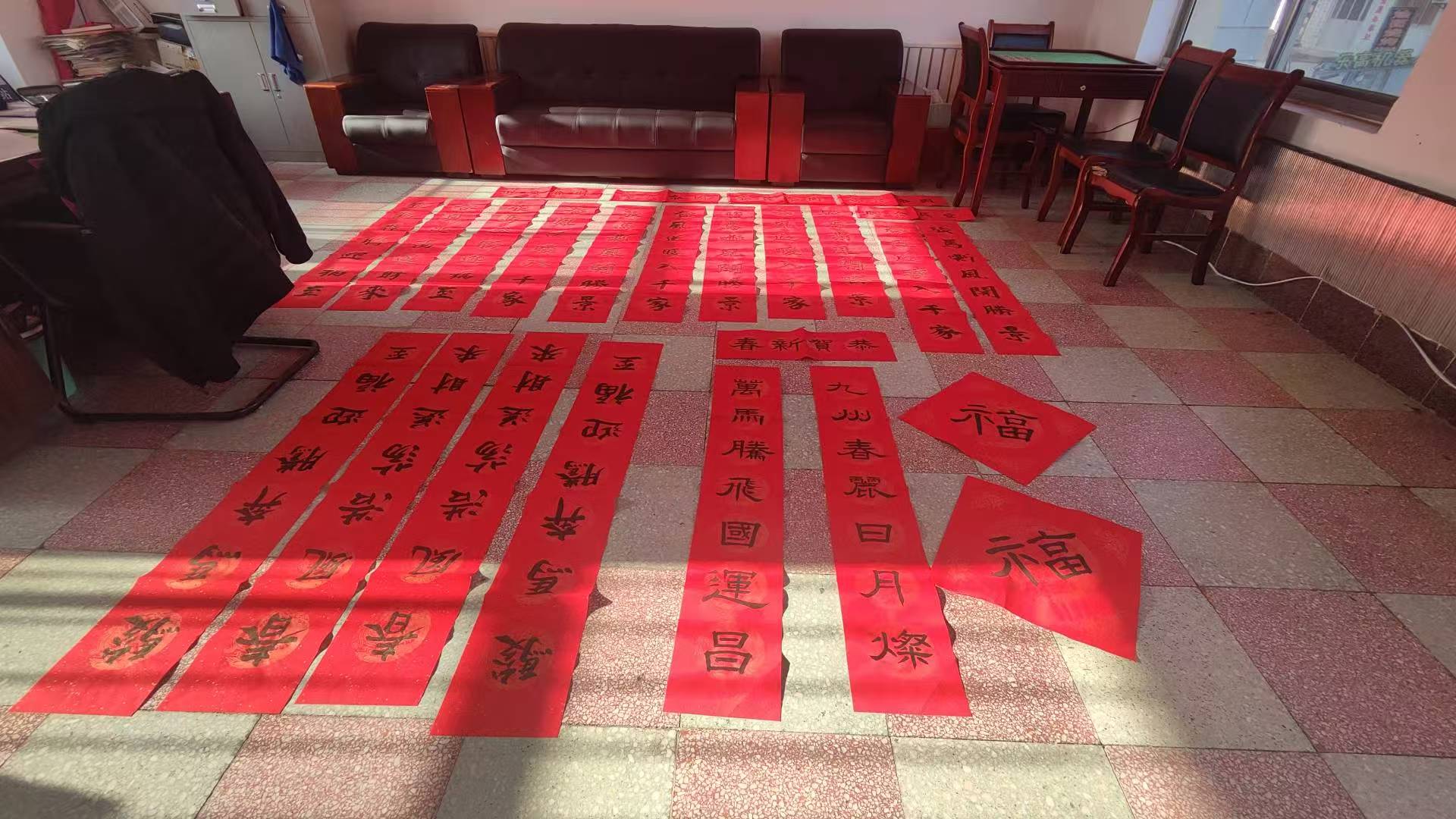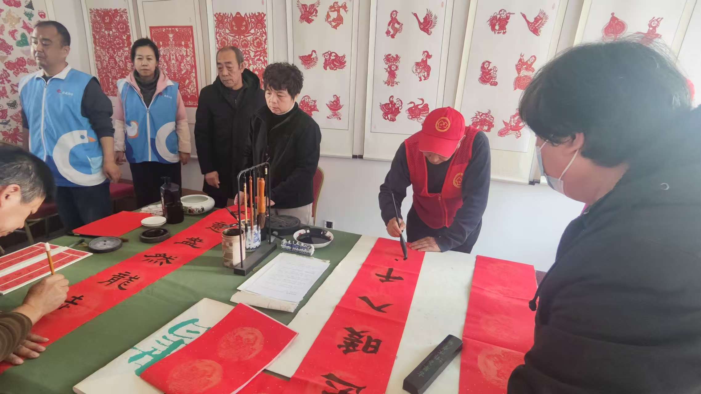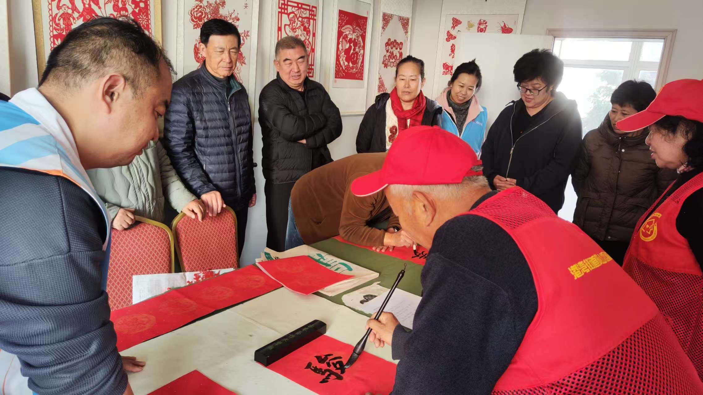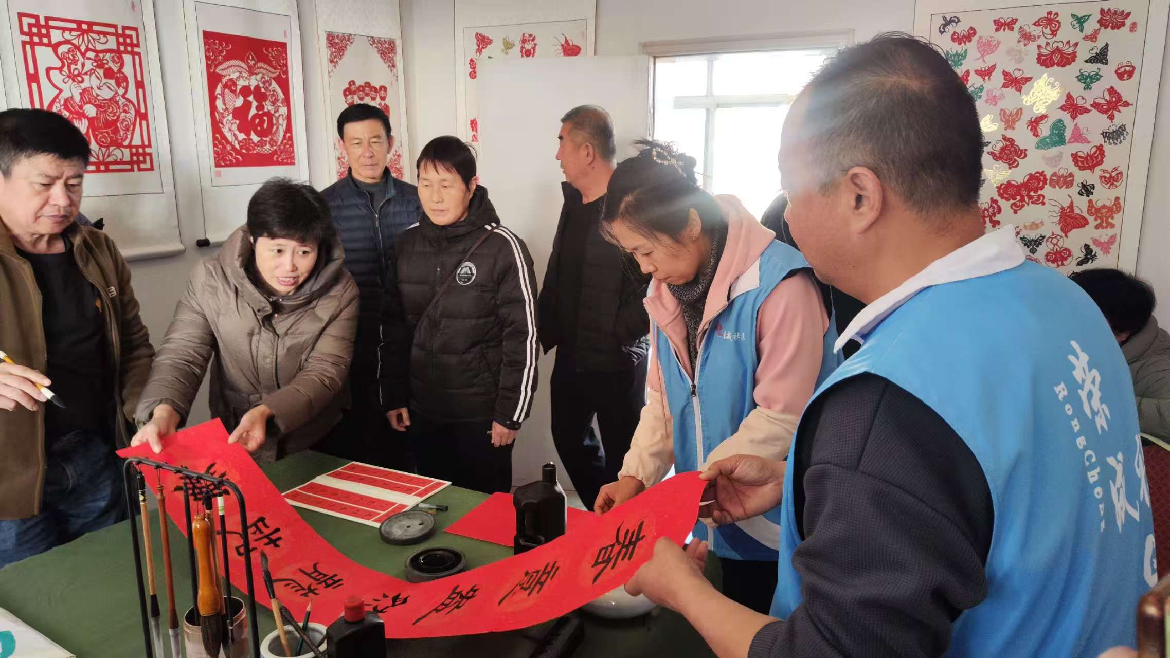 春节贴春联,是传统习惯,贴春联不仅增加了节日气氛,还继承了传统习俗,并且民间还流传着有驱邪保平安和祈福寓意。临近春节,港湾街道陀山社区银龄志愿队于2026年1月13日8点至11点组织3名志愿者开展为社区居民书写春联志愿服务活动,由王有江主任负责组织,张红丽负责招募,慕险峰负责拍照,三人一起参加活动,参加活动的社区居民约20人左右。活动中,王有江主任根据马年的寓意,当场书写春联,马年的吉祥祝福跃然纸上,红彤彤的春联,映照着人们的笑脸,传承了传统习俗,增加了节日色彩!