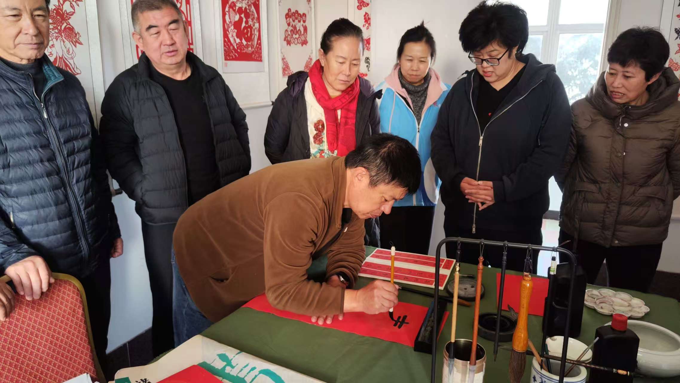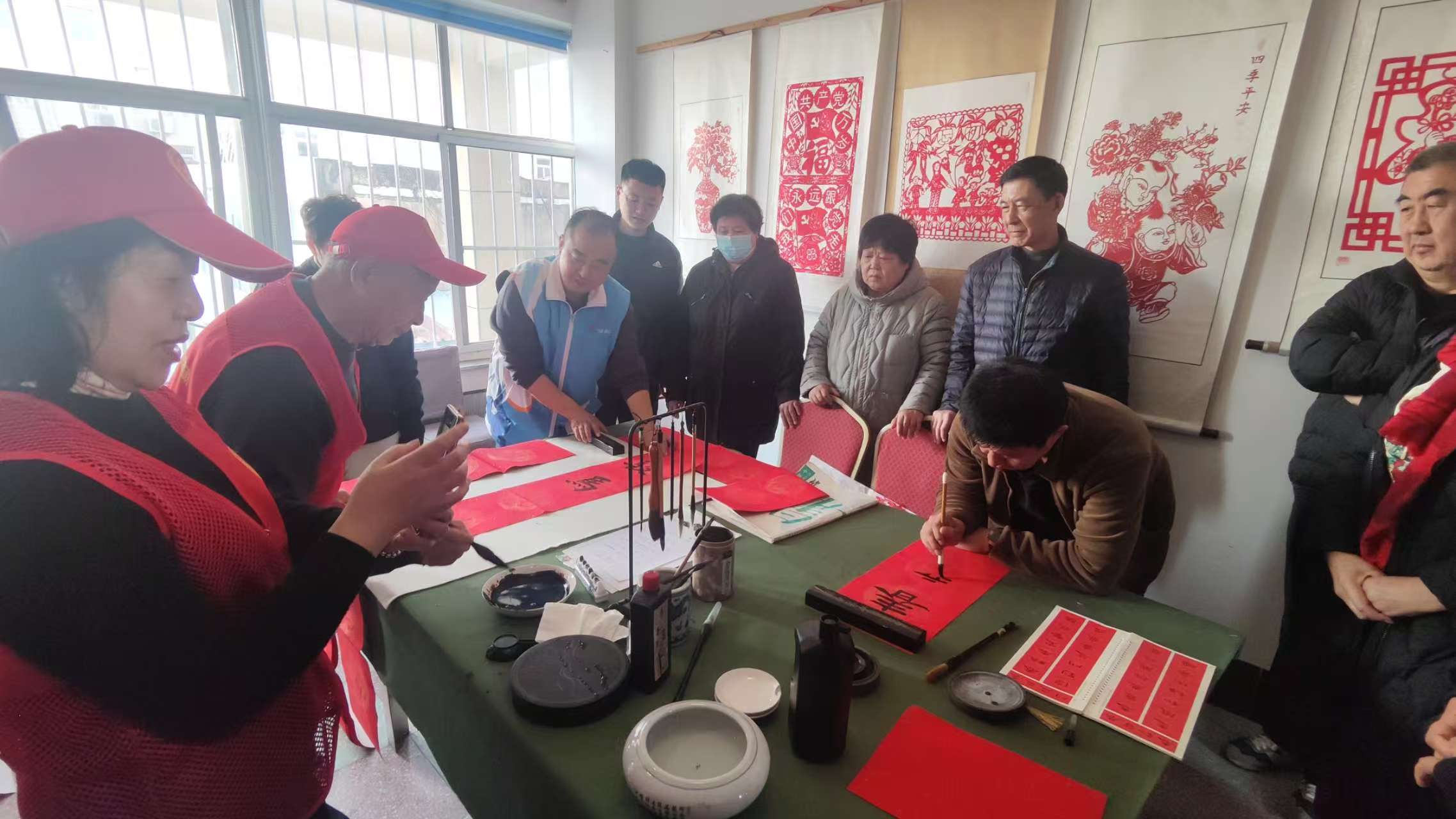 港湾街道陀山社区银龄志愿队开展为社区居民书写春联志愿服务活动
