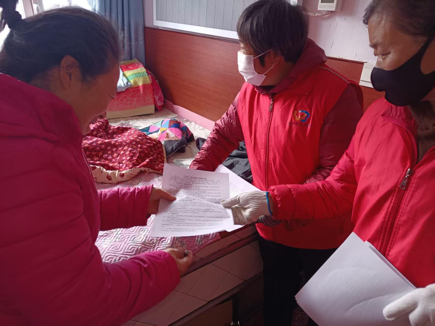 1月16日人和镇金沟村志愿服务队开展走户宣传一氧化碳志愿服务活动