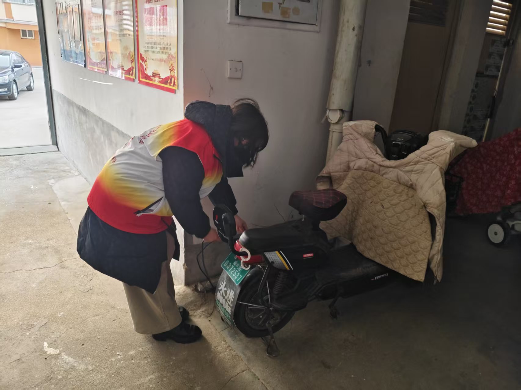 青山社区服务队:1月22日开展“巡查楼道电动车飞线充电”志愿活动