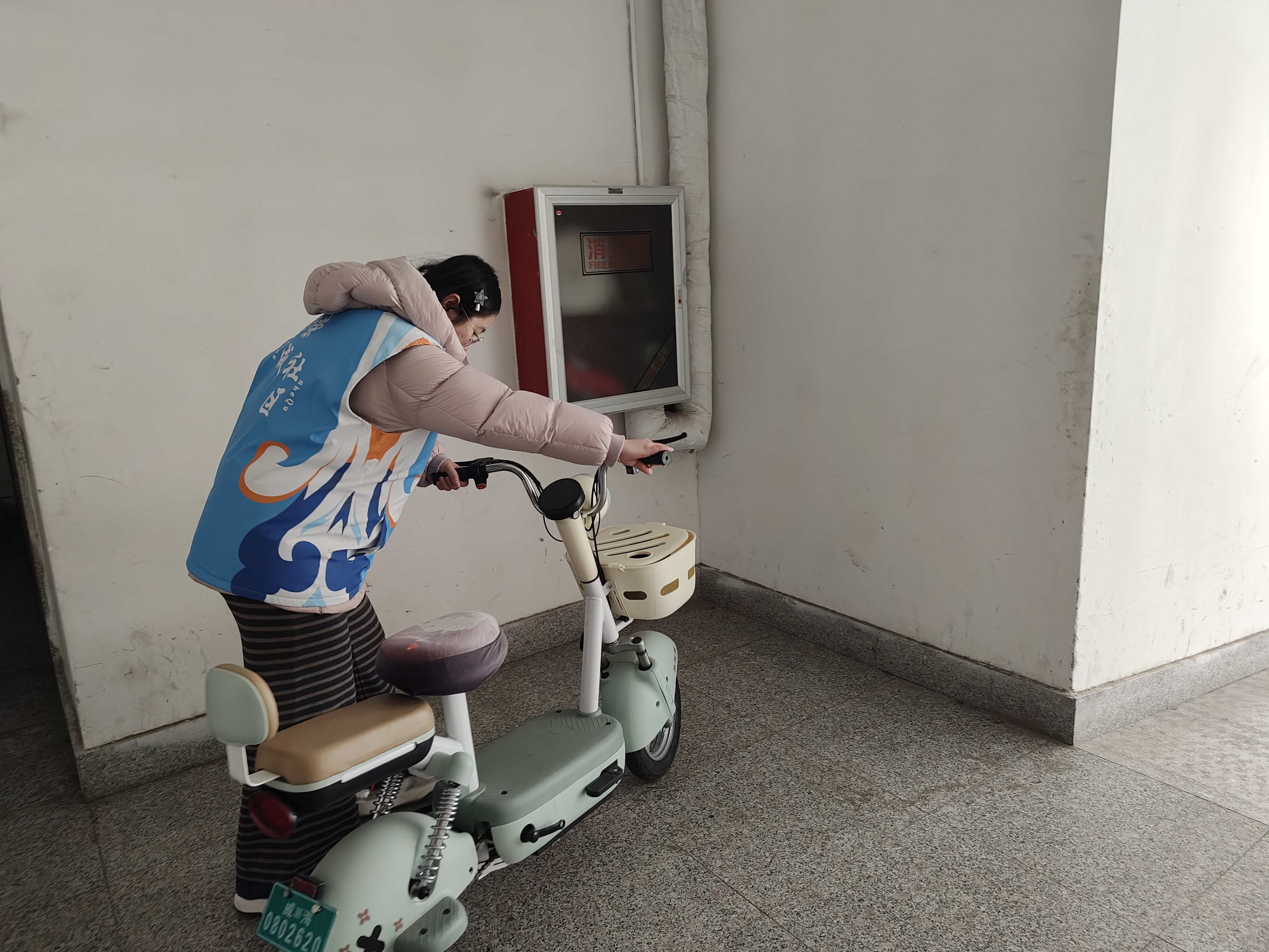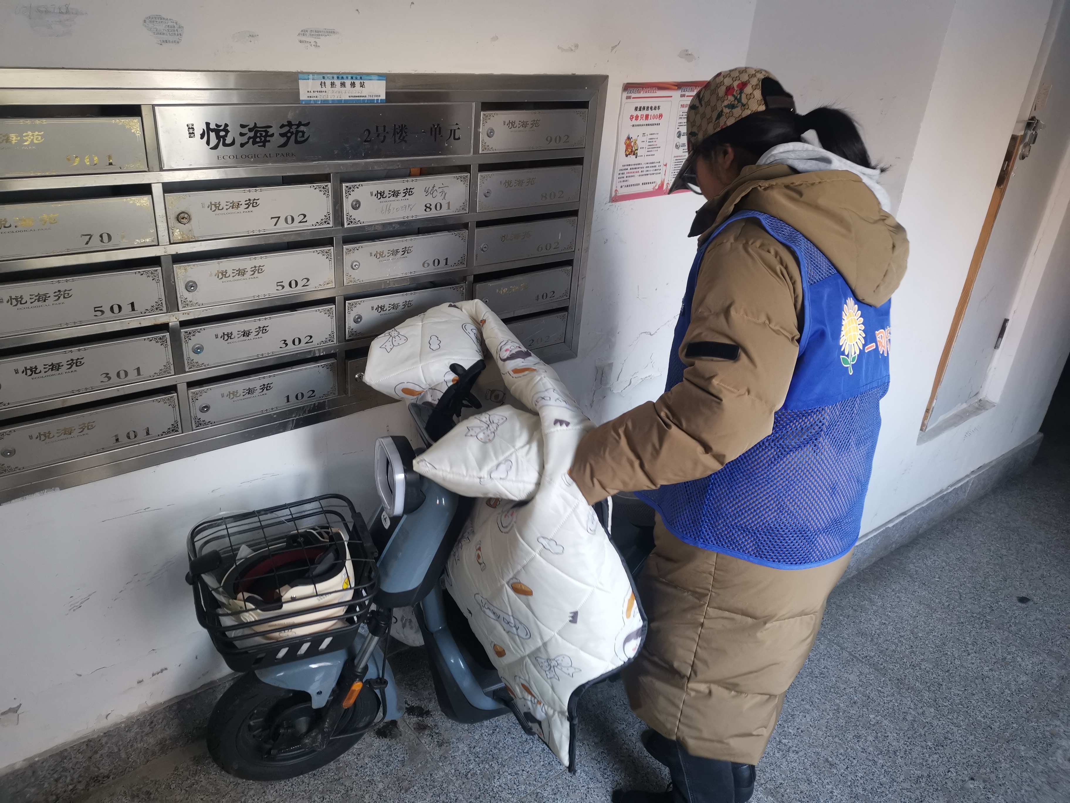 蜊江社区服务队:1月25日开展督导停放电动车志愿活动
