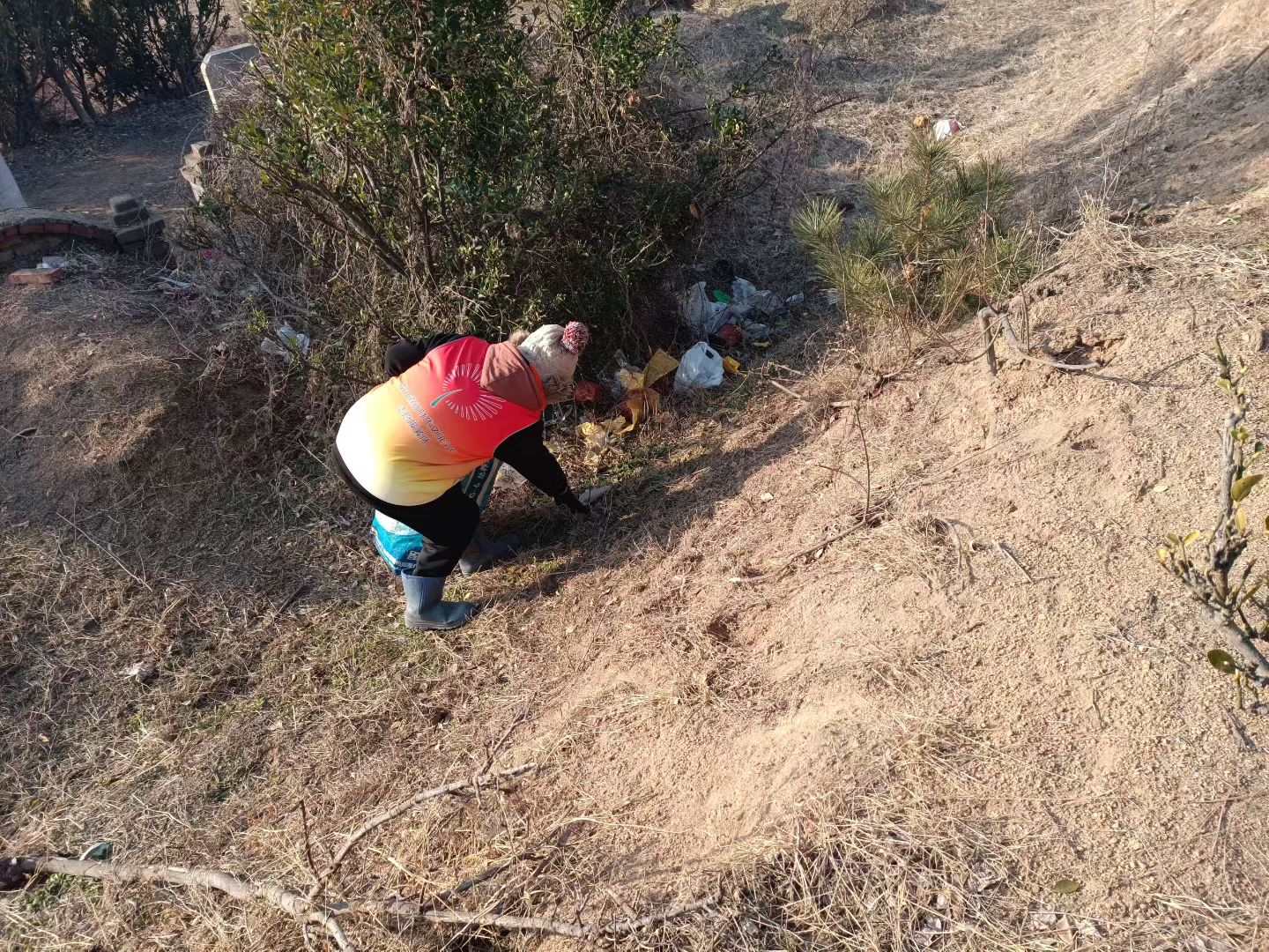 为了降低墓地火灾风险,成山镇磨山村志愿服务队1月28日8:30一9:30组织3名志愿者开展清理墓地垃圾志愿服务活动,活动中志愿者要穿志愿服上岗,要有不怕脏和累、认真负责精神,要有责任心,听从指挥和安排,认真仔细地清理每一个角落,不给火灾留下隐患。