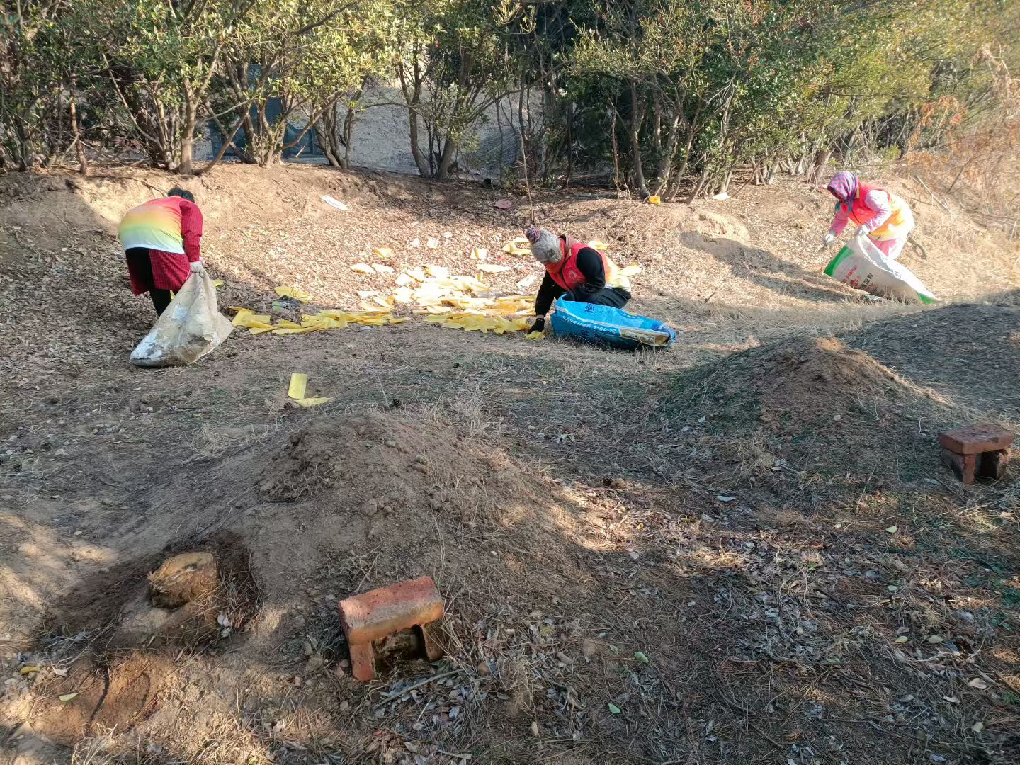 成山镇磨山村志愿服务队1月28日组织志愿者开展清理墓地垃圾志愿服务活动