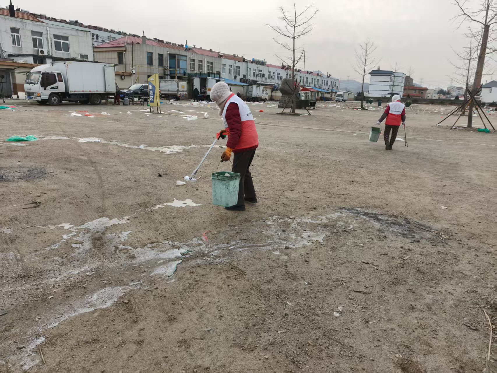 宁津所村志愿服务队1月26日开展大集场地垃圾清除志愿服务活动