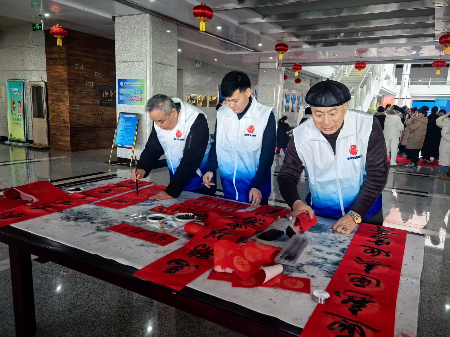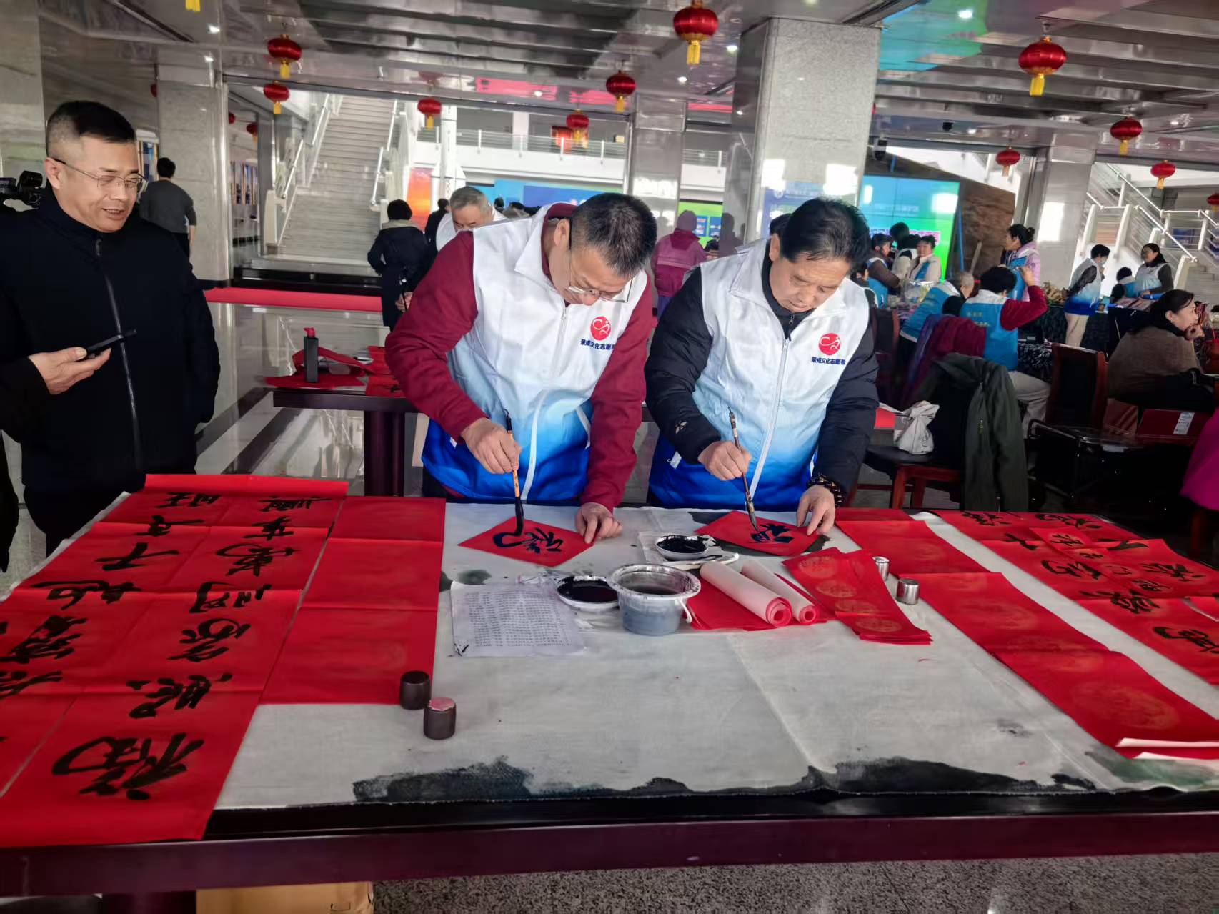 2月7日上午,荣成市文化志愿者协会组织荣成市书法家协会老师6人“万副春联进万家”活动走进荣成市博物馆。书法家现场绘制春联,浓浓的年味与文化暖意送跃然纸上,为新春增添浓厚的文化氛围,现场书写春联百余幅,惠及群众200余人。