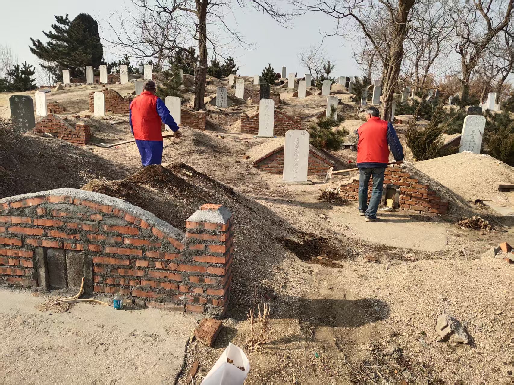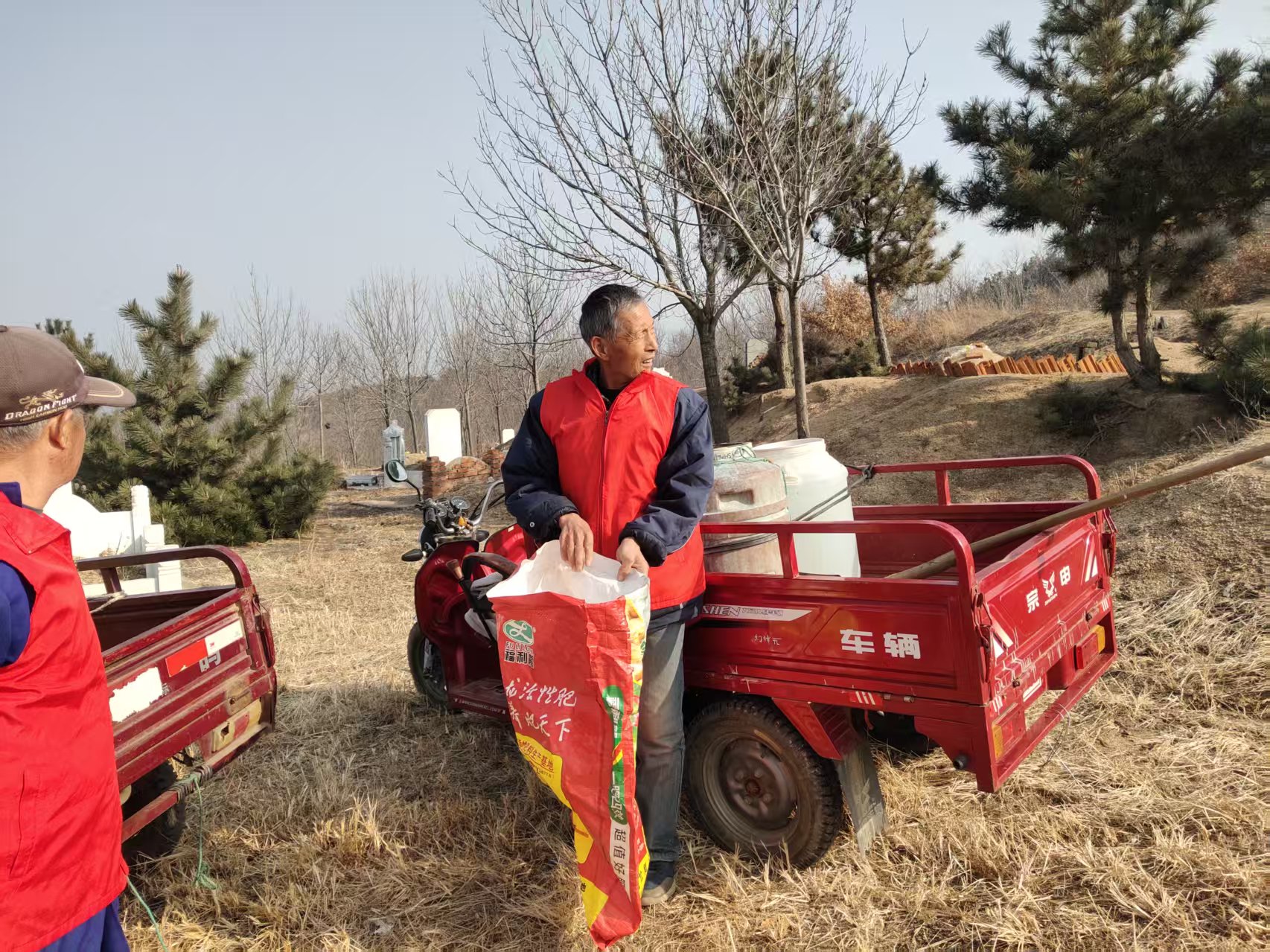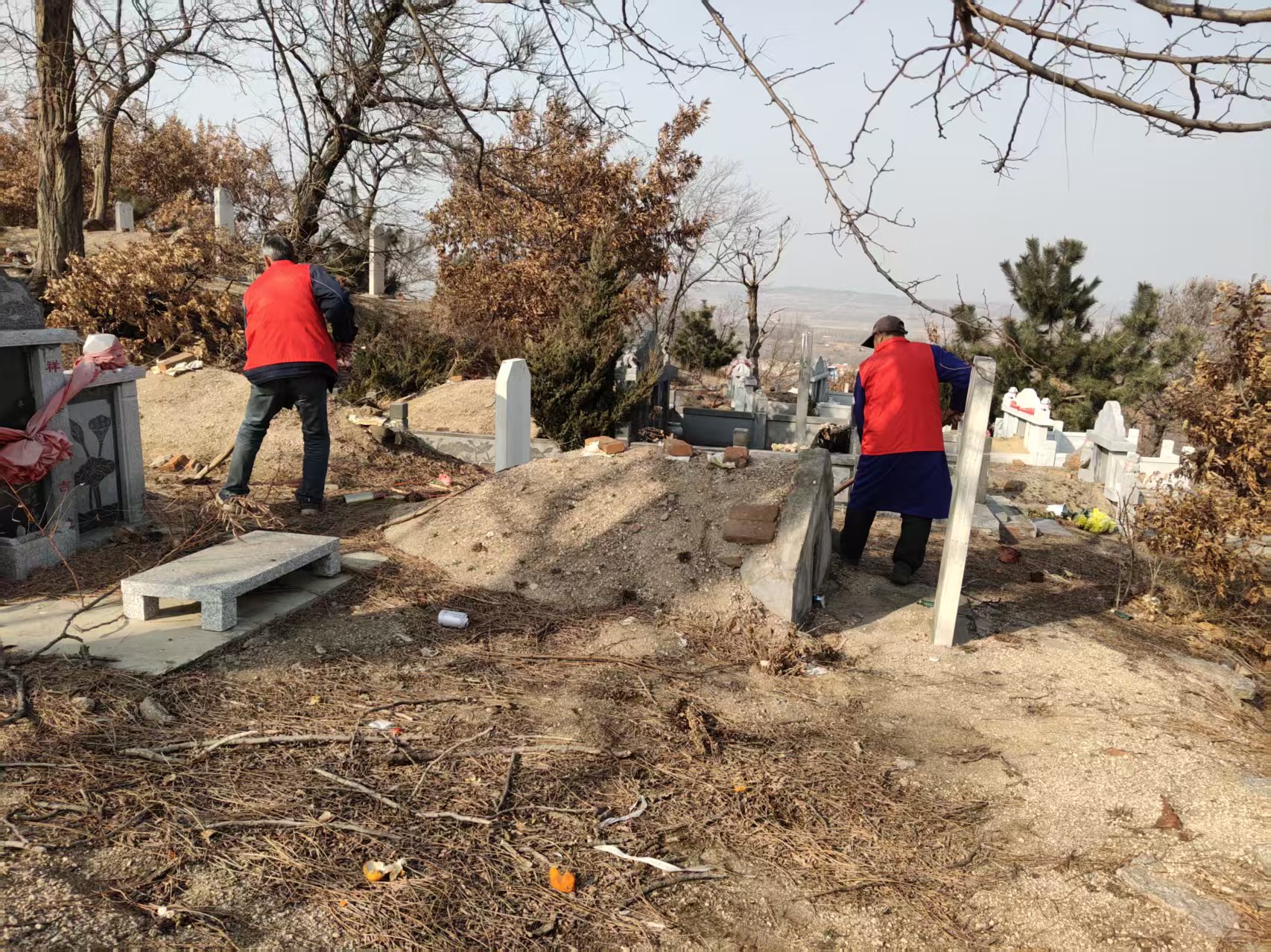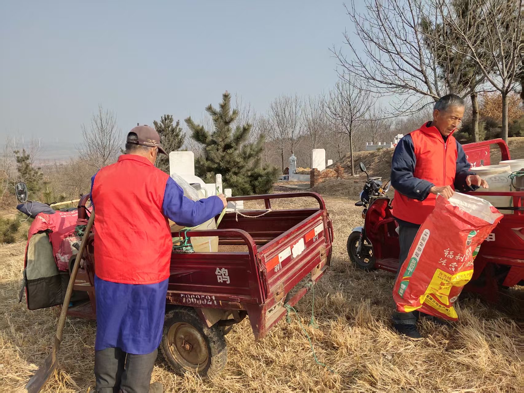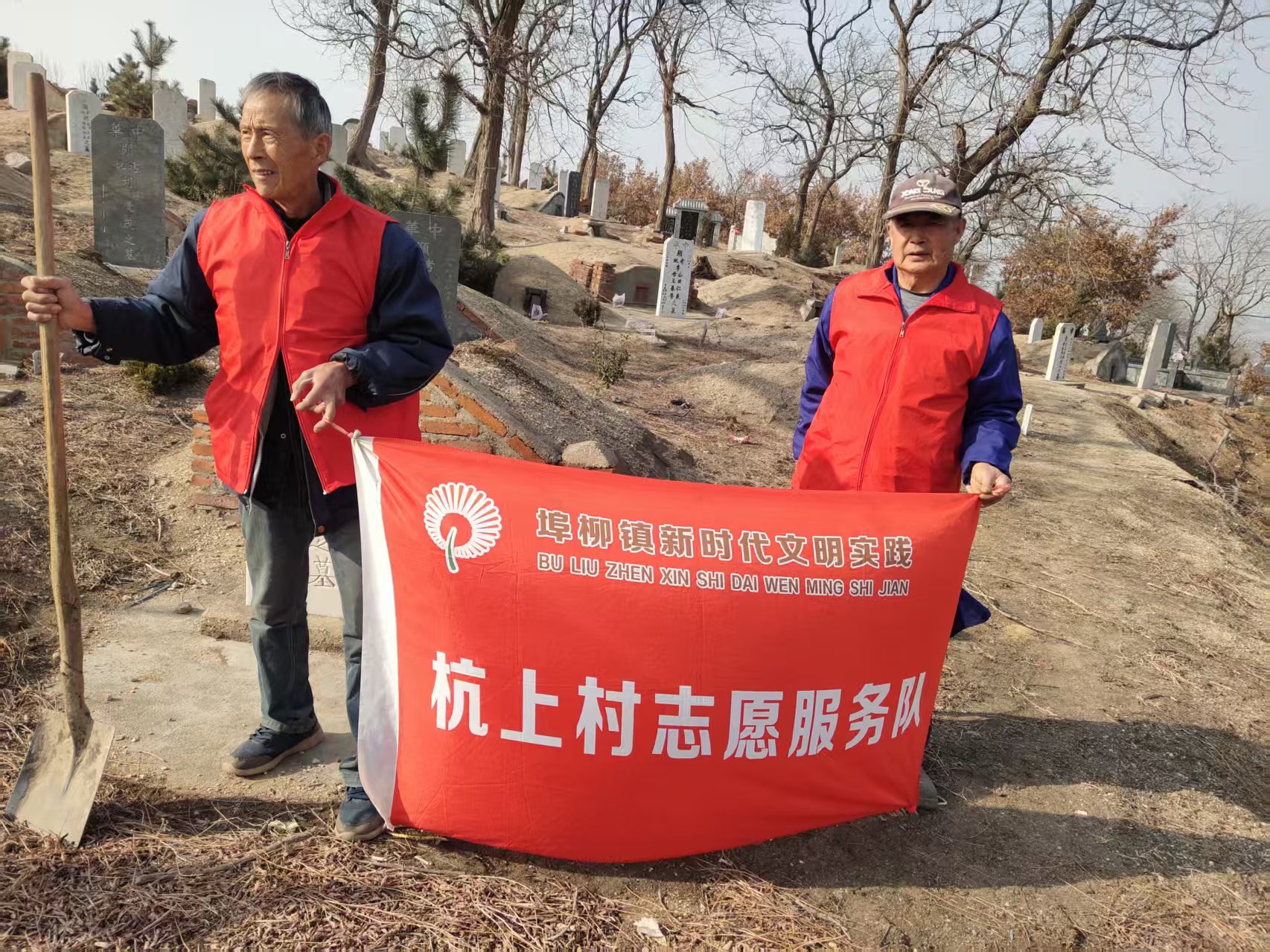埠柳镇杭上村志愿服务队:开展给坟地拉水,收拾坟地垃圾志愿服务活动