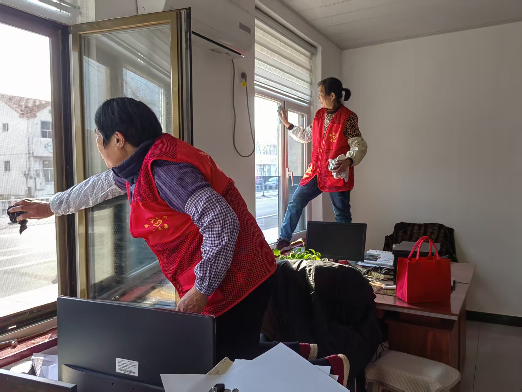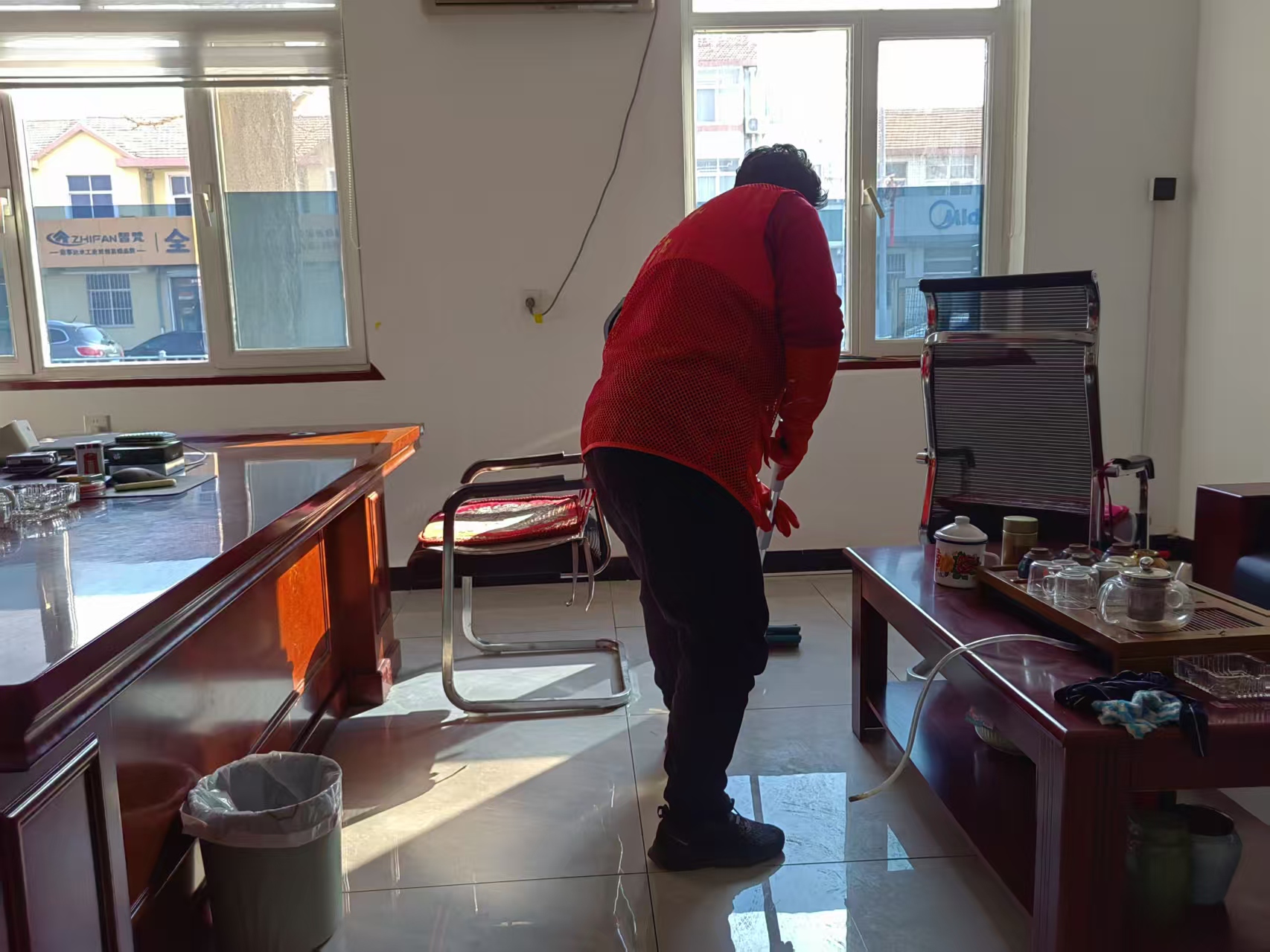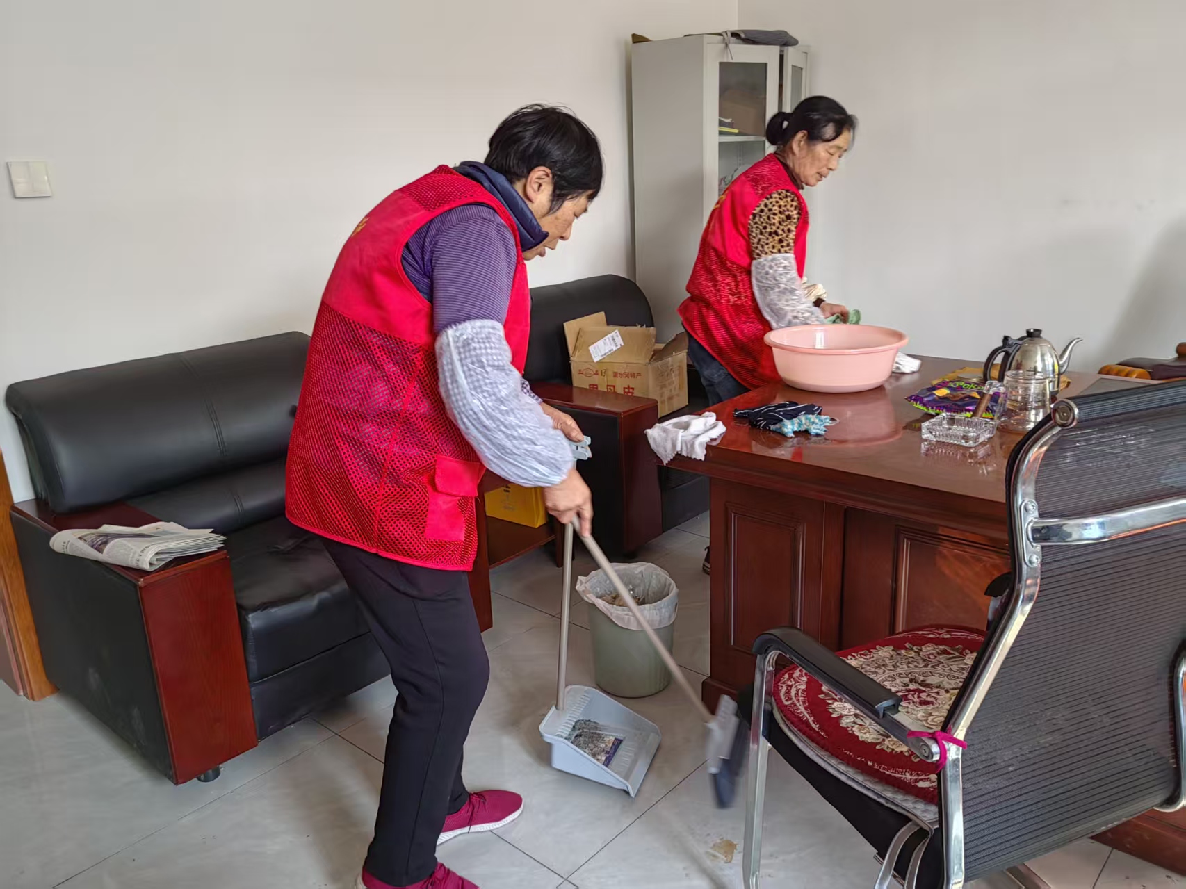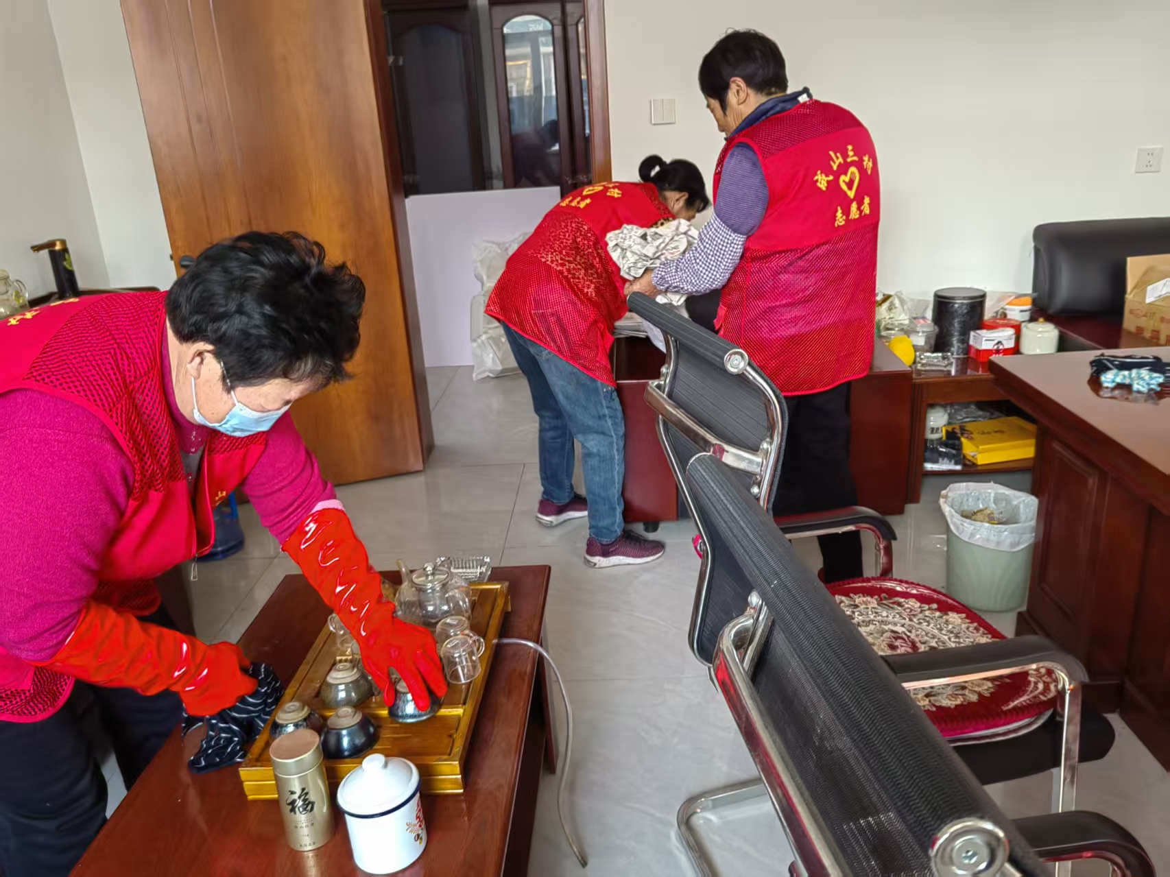 成山镇成山三村志愿服务队2月13日组织志愿者开展村委办公室打扫卫生志愿服务活动