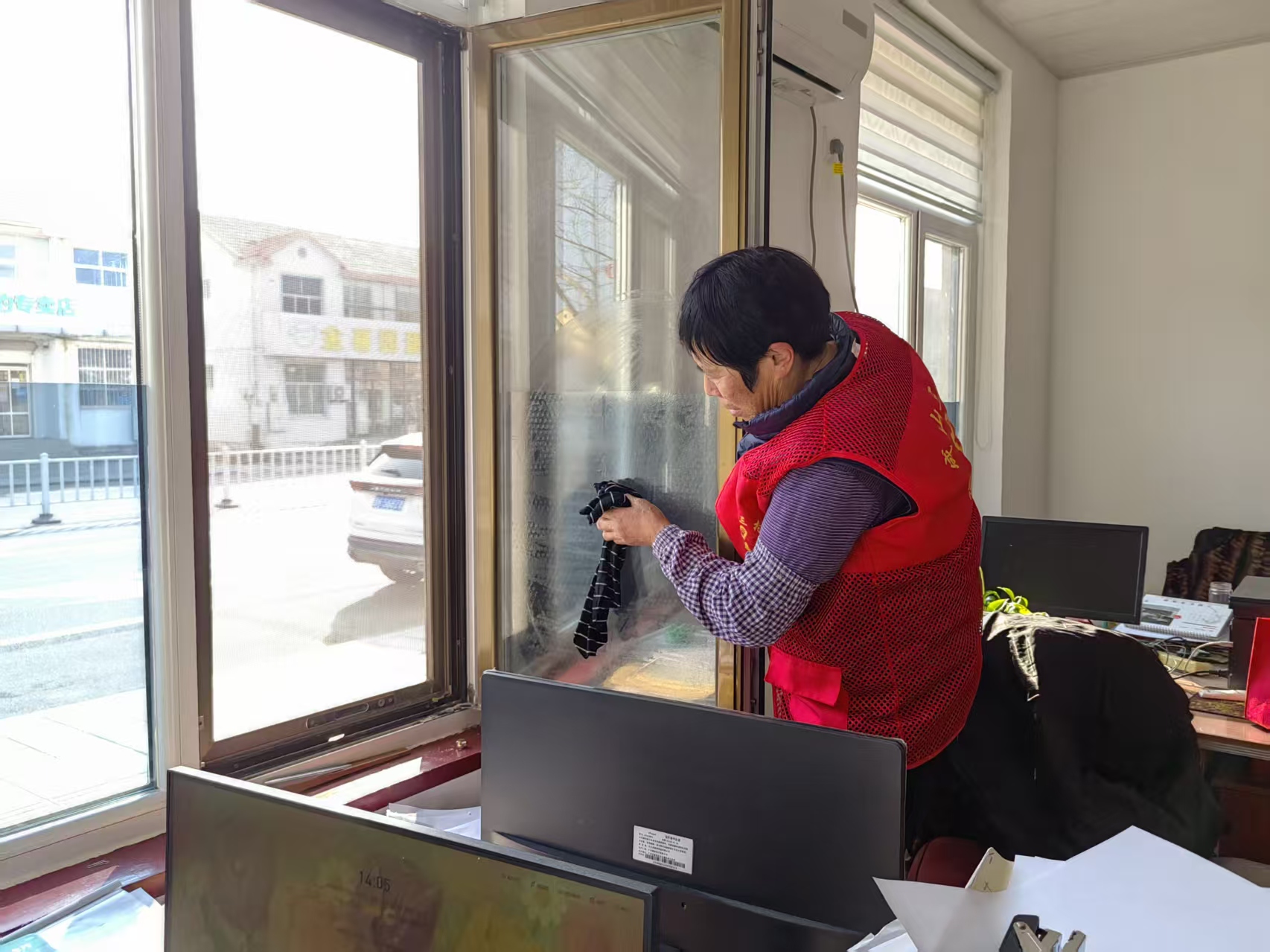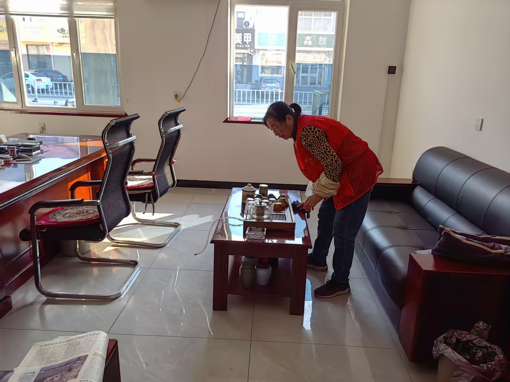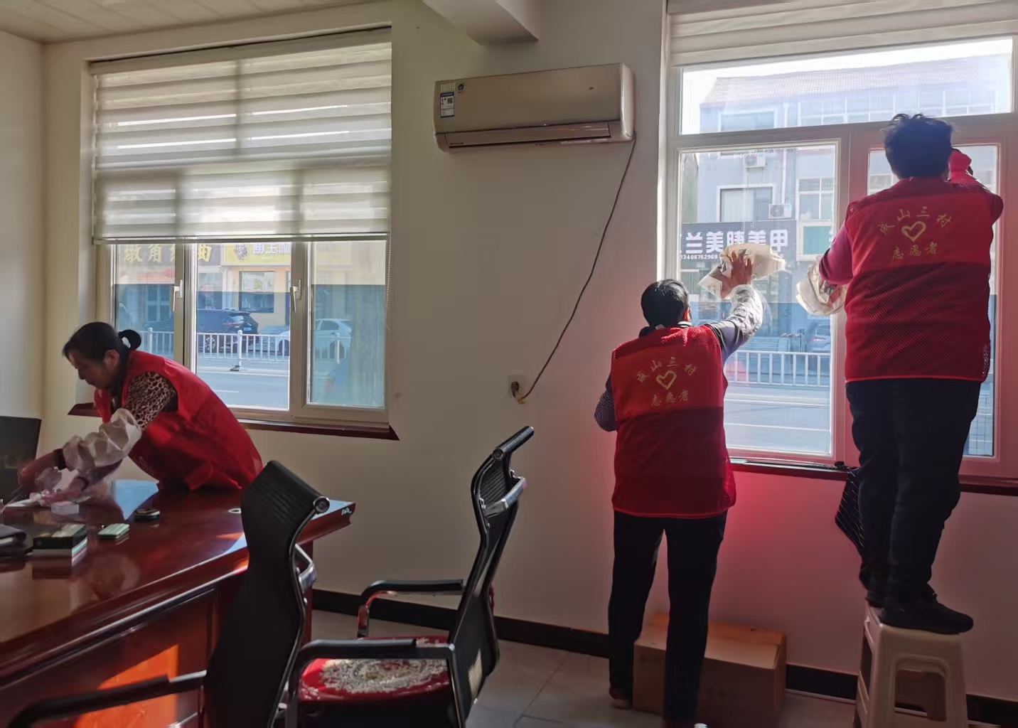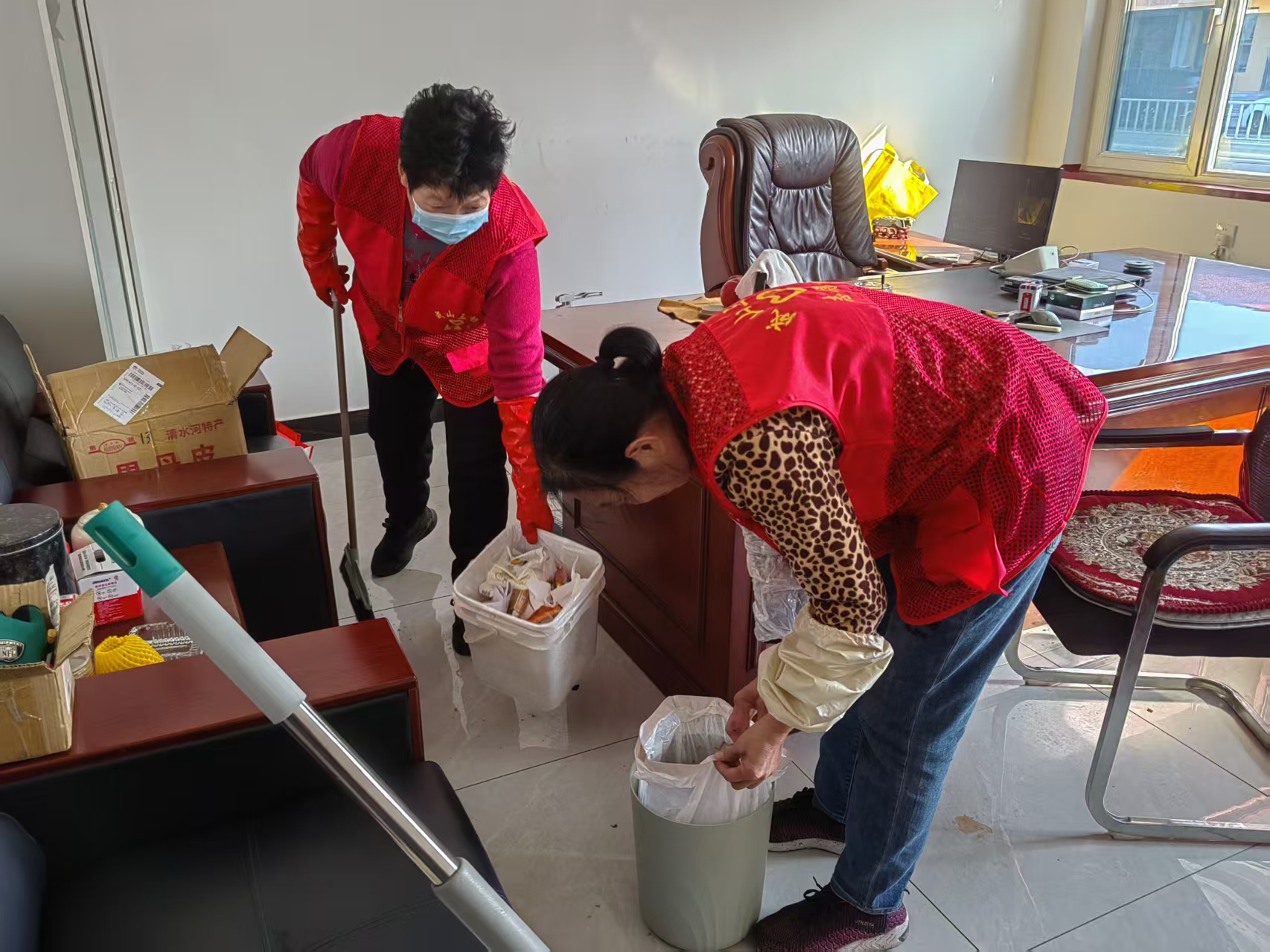 成山镇成山三村志愿服务队2月13日组织志愿者开展村委办公室打扫卫生志愿服务活动