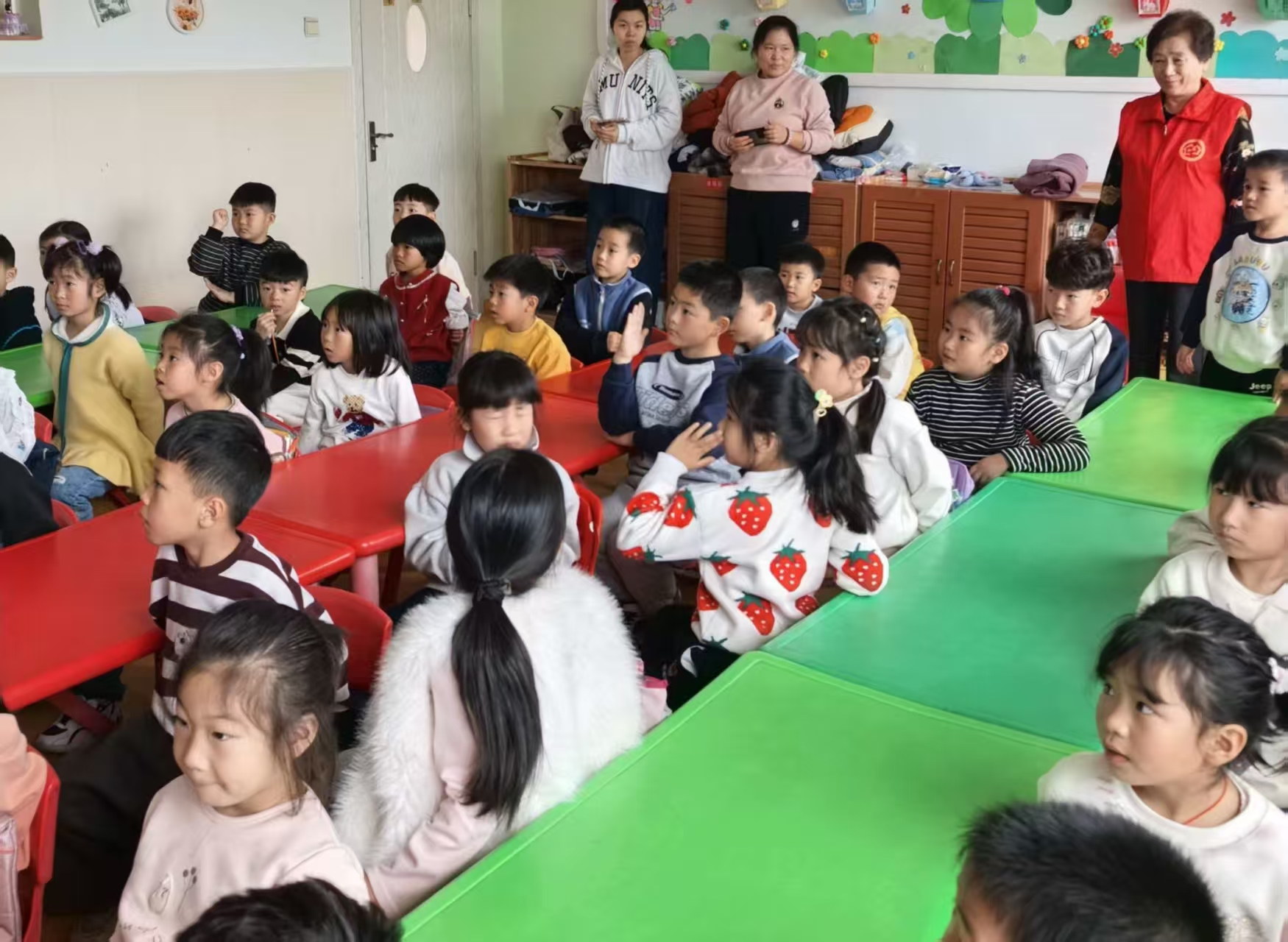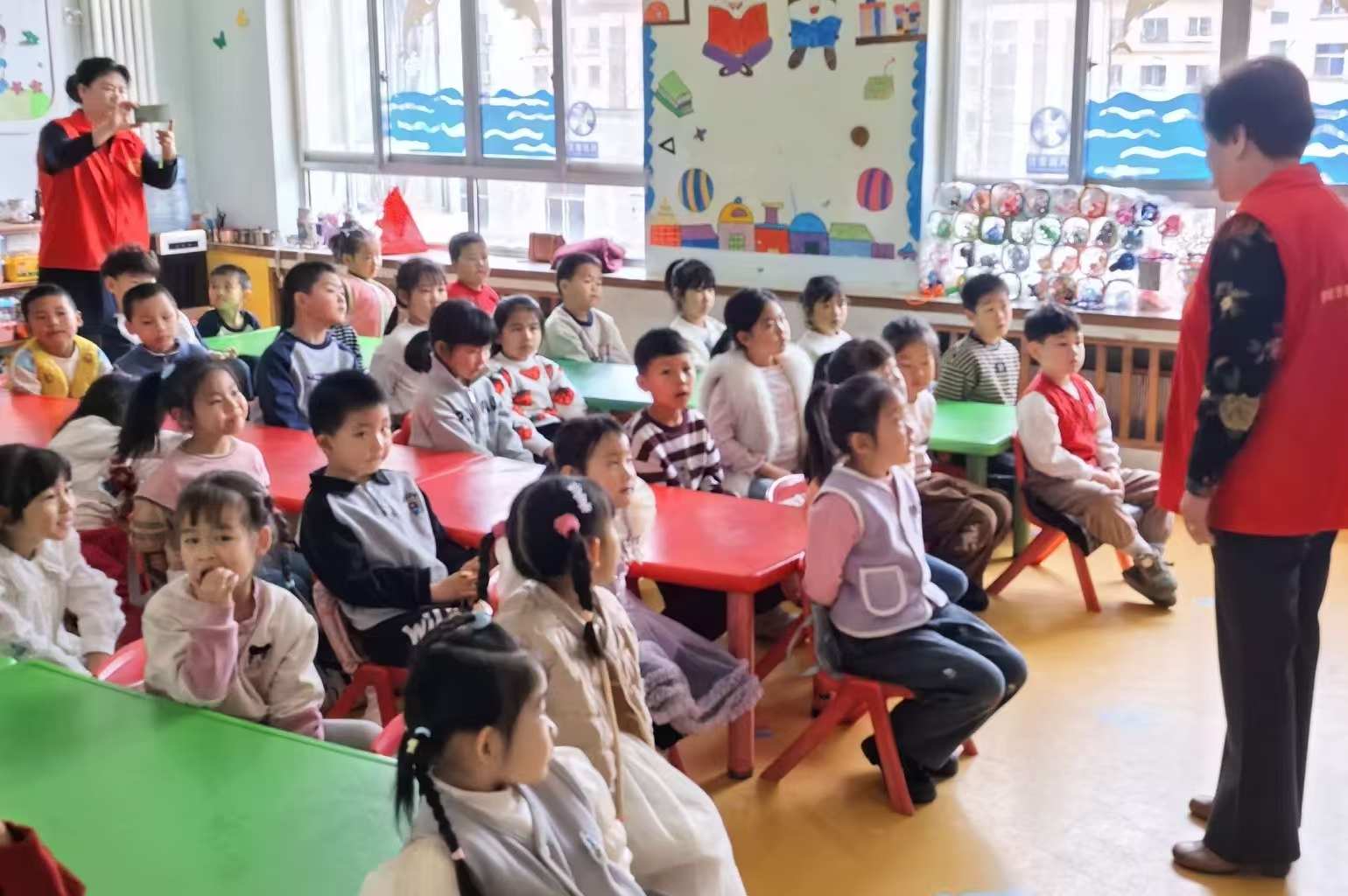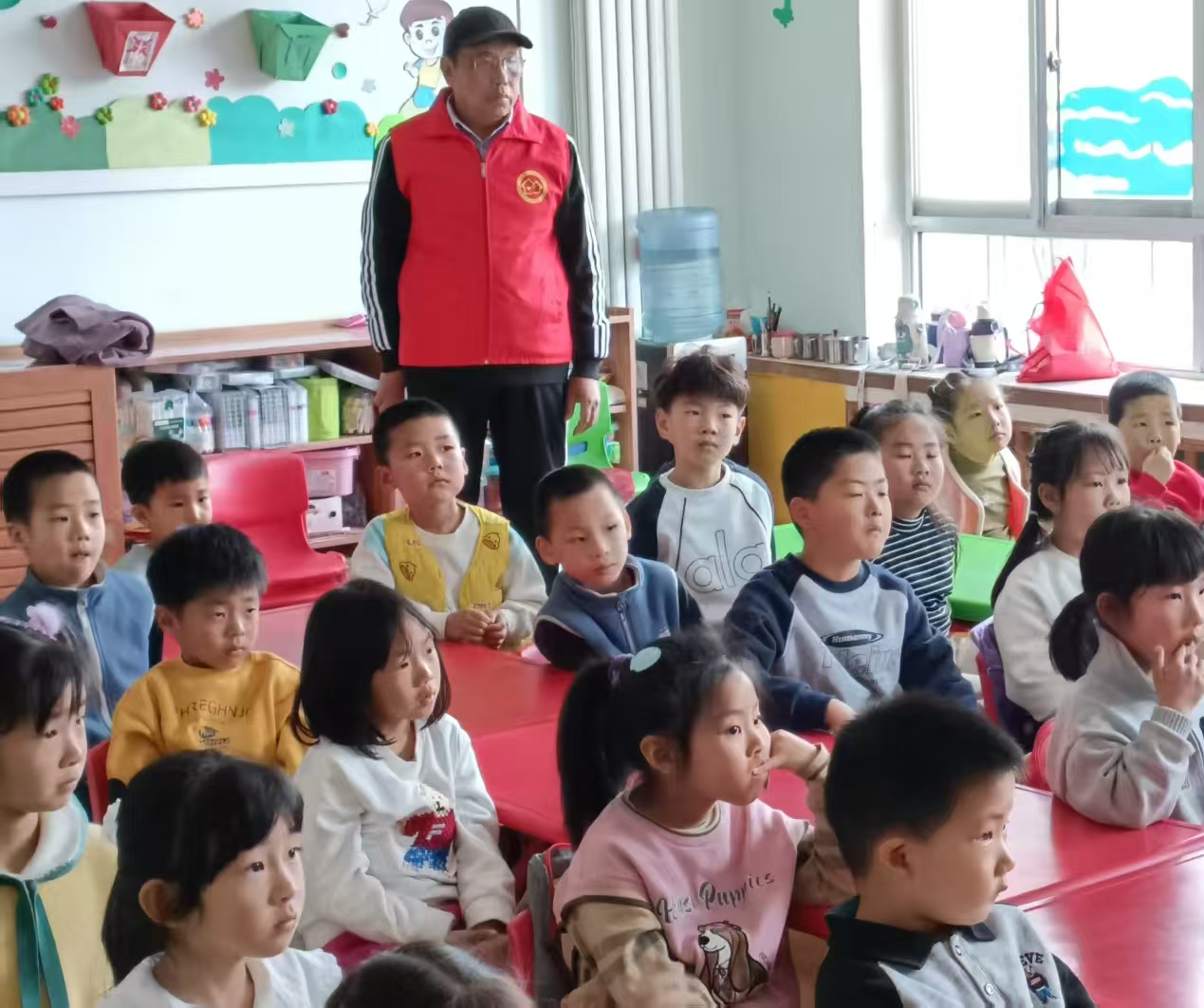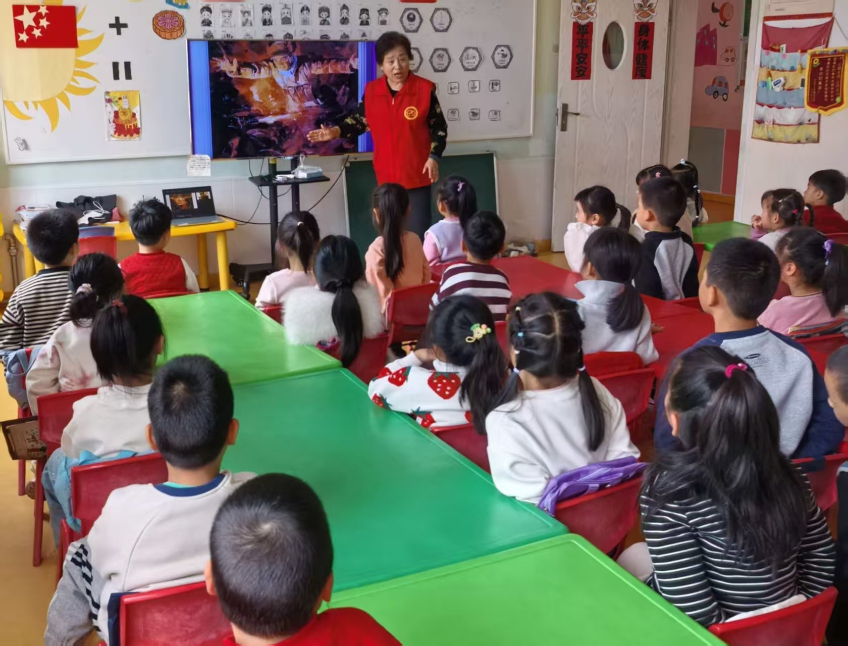 学龄前儿童正处于道德观念形成的萌芽期,是民族的未来和希望。应石岛大鱼岛幼儿园的邀请,港湾老干部志愿服务队“五老小分队”组织4名志愿者于2026年4月9日走进大鱼岛幼儿园开展“讲英雄故事 学英雄精神”志愿服务活动,活动服务40余人。少年儿童是祖国的花朵,是培养良好品德行为的黄金时期,立足幼儿的成长对其进行“讲英雄故事 学英雄精神”,萌发自己作为中国人的自豪感、对祖国的认同感和归属感,对幼儿和社会都是具有重要意义的。