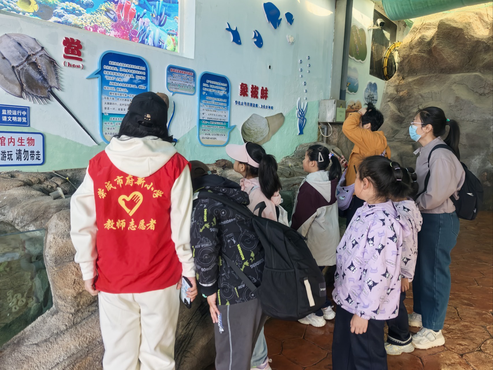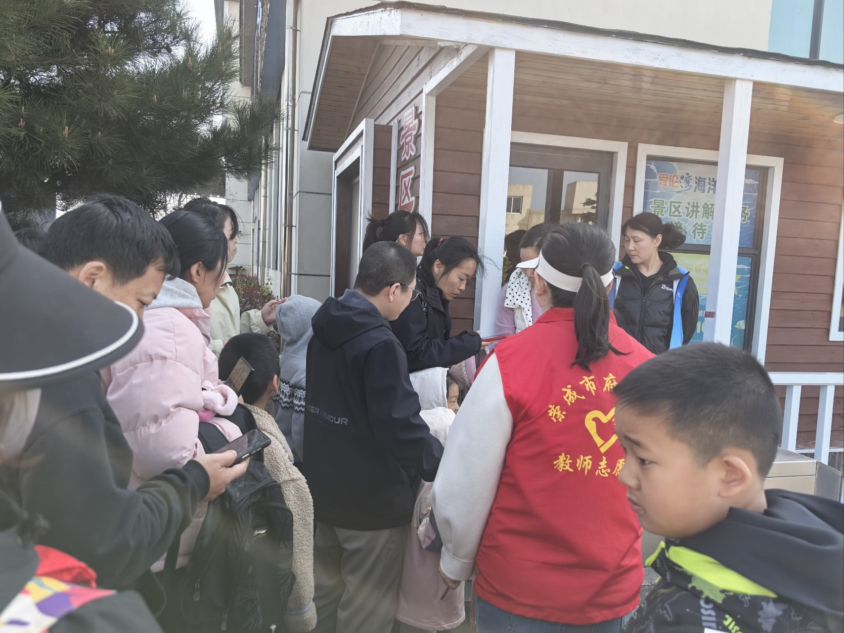 荣老师府新小学志愿分队4月11日走进荣成市爱伦湾海洋牧场进行志愿活动