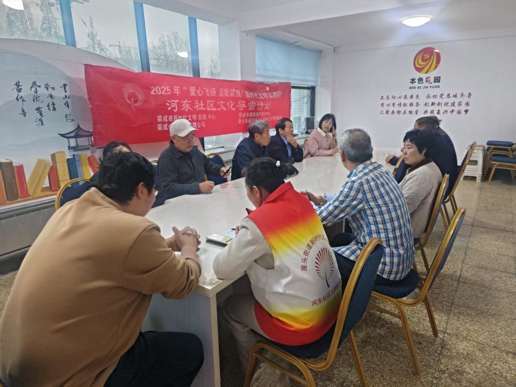 河东社区于2026年4月18日8:30-10:30邀请社区戏曲、合唱、乒乓等文化团队负责人14人开展文化导赏计划——社区书院建设交流座谈活动,活动详细介绍活动室分配以及社区书院管理规定、钥匙使用规则等。活动组织2名志愿者,负责活动开展、入场签到、拍照以及秩序维护等工作。通过此次活动,激发了大家对中华文化的认同和热爱,统筹打造社区文化资源、创新服务供给模式,提升了社区治理的系统化、精细化、专业化水平,为文化社区建设提供了新思路和新路径。