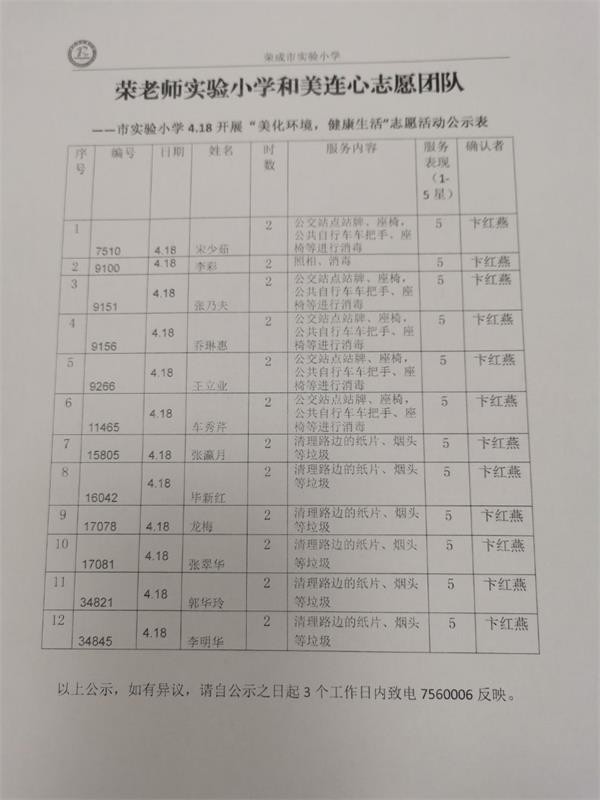 荣老师实验小学4月18日“美化环境,健康生活 ”志愿服务活动