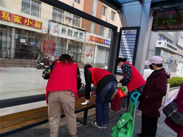 九点不到,就陆续有志愿者老师来到了学校门口集合。大家拿着小喷壶、抹布等消毒工具,然后积极投身到消毒活动中。春寒料峭,乍暖还寒。教师志愿者不怕脏、不怕累,分工明确、行动迅速、干劲十足,大家对公交站点站牌、座椅,公共自行车车把手、座椅等与身体密切接触的地方进行消毒。在公交站点、公共自行车站点以及道路两旁发现垃圾,及时进行了清理。参与洁城责无旁贷,助力抗疫方兴未艾。