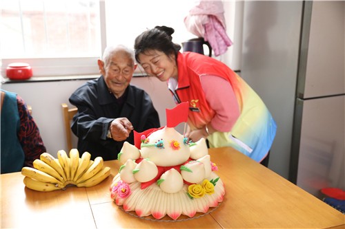 为老兵送上精心准备的胶东民俗大饽饽,为老兵的生日添喜气,再披战袍,老兵的幸福感溢于言表,家庭的和美幸福令我们感动。