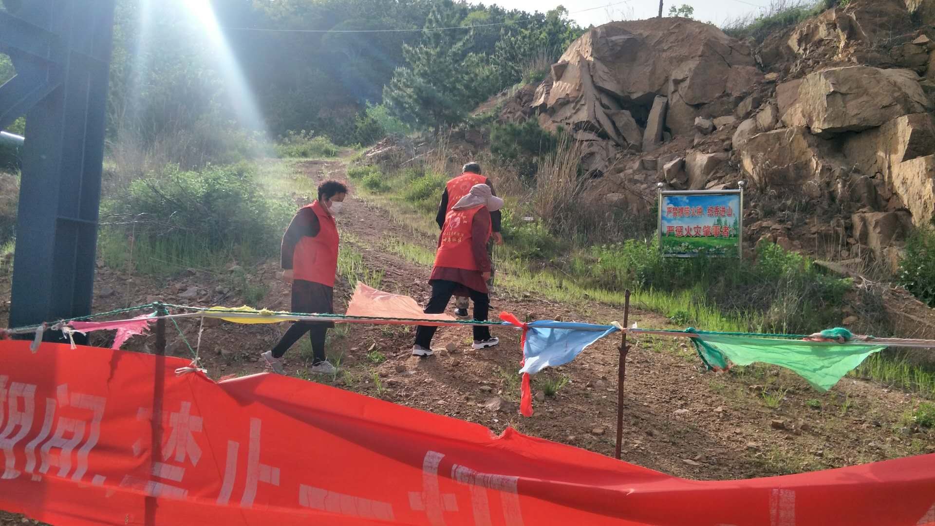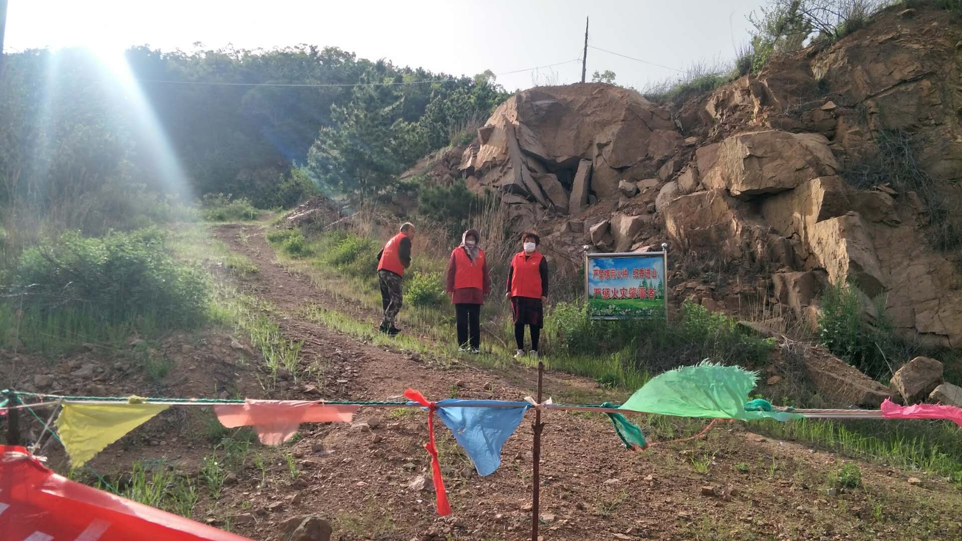 森林防火任务极其重视,为防止群体聚集性上山,也为全力做好森林防火工作,牧云庵村组织志愿者成立巡山护林防火志愿队,协助村委看山人员对进山路口进行严防把守,禁止任何人员进山,做好护林防火的监督监管工作。