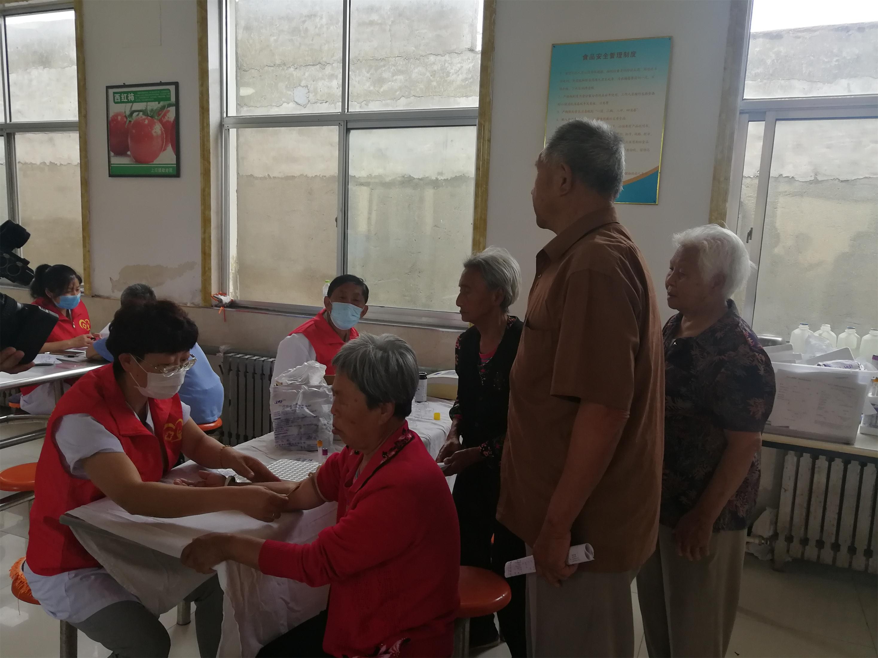 庆祝“七.一”党的生日,上庄中心卫生院党员志愿者们来到上庄敬老院,为老年人们进行免费健康查体,对照查体结果,给予老人们个性化健康教育指导以及用药指导。