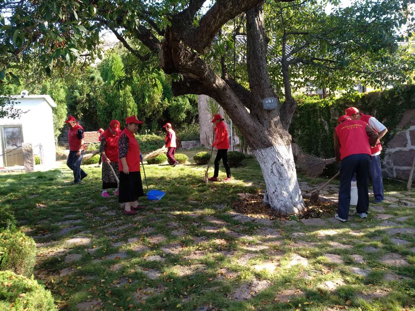 东山老干部志愿者分队一行十人,为喜迎国庆,美化荣成,于本月25日上午8点至11点到龙山革命纪念馆进行一次“清扫落叶,拔除杂草”的活动,志愿者们顶着烈日炙烤,不怕脏,不怕累从八点开始一直劳动到11点。通过一上午的志愿者劳动,院内的落叶杂草基本清除干净。