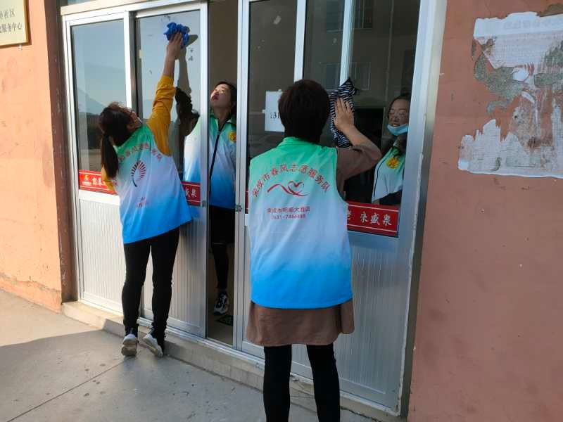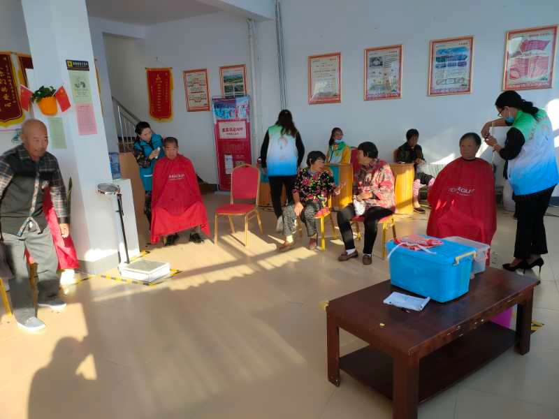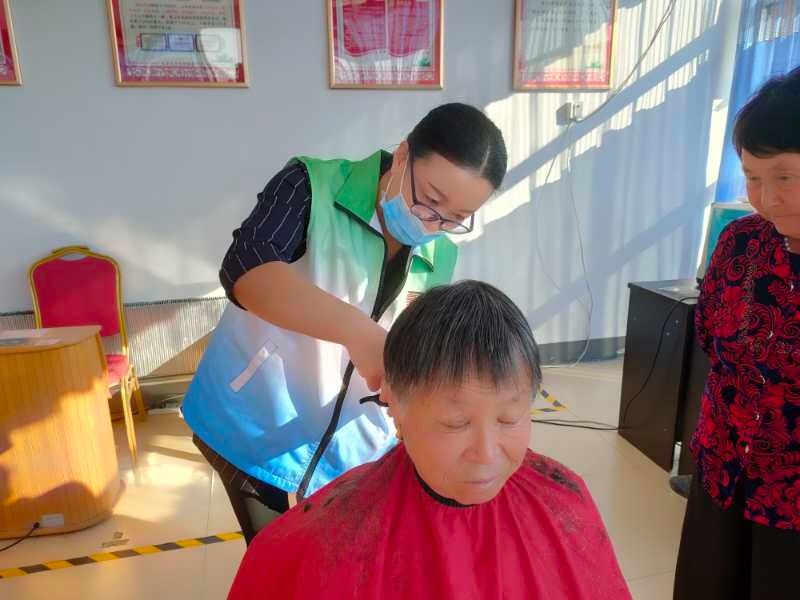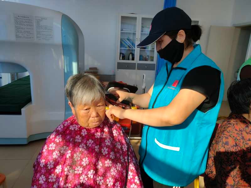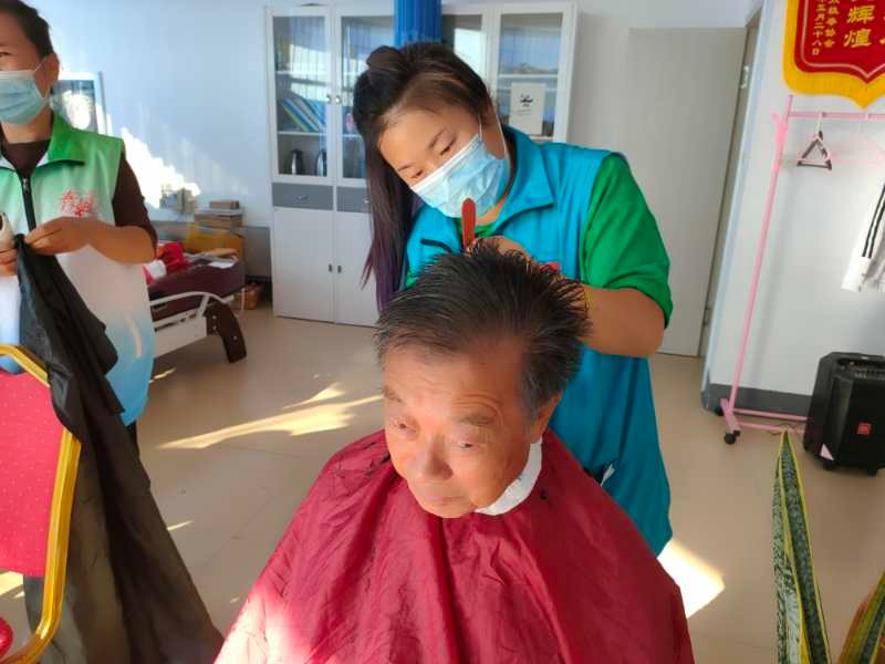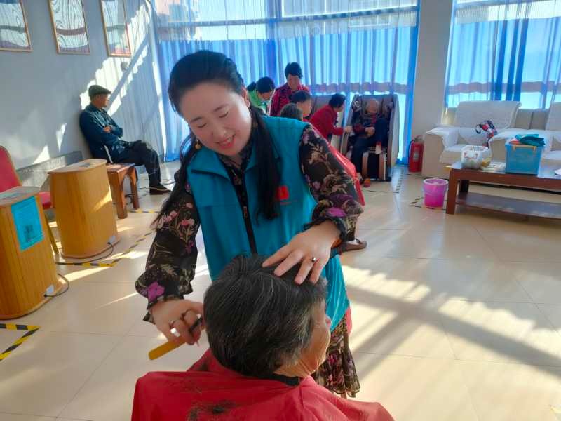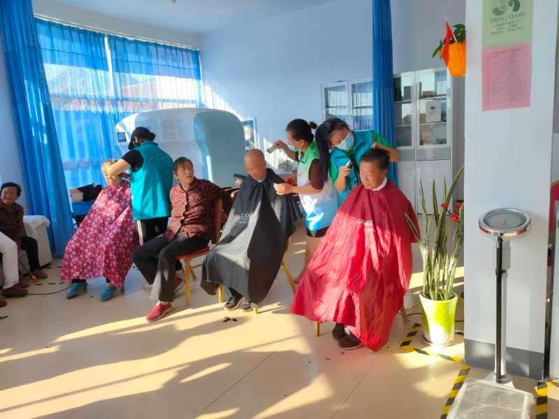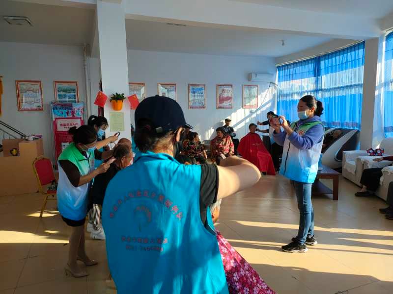 10.9人和镇春风服务队招募15名志愿者到人和镇社区养老中心进行常态化服务,为50位老人理发、打扫卫生、修理有故障的电器等。