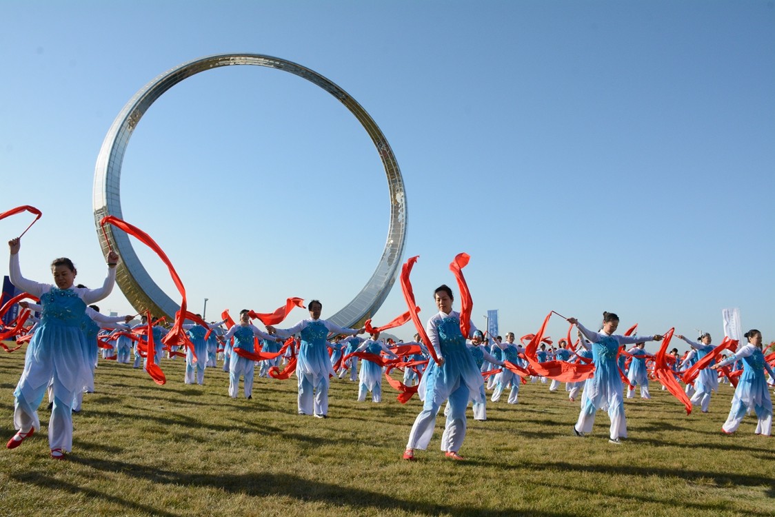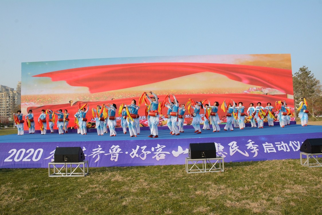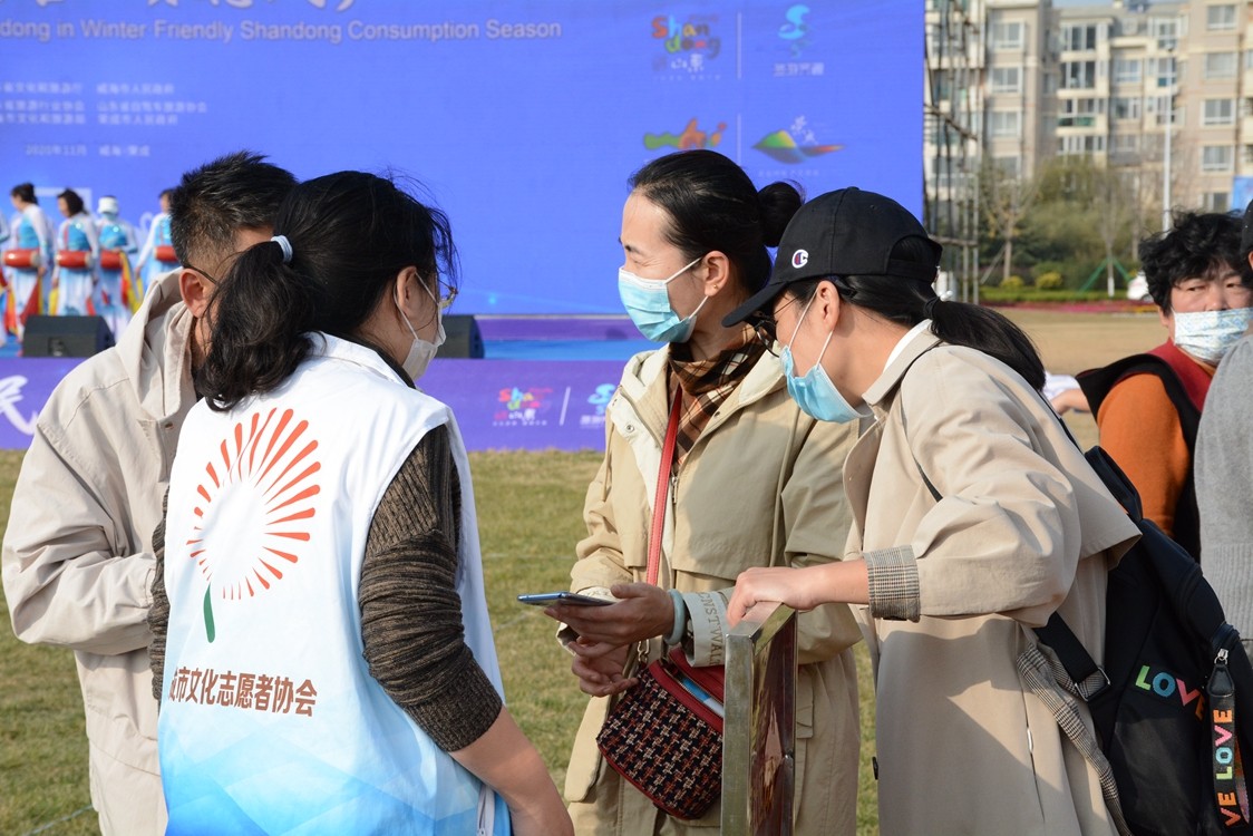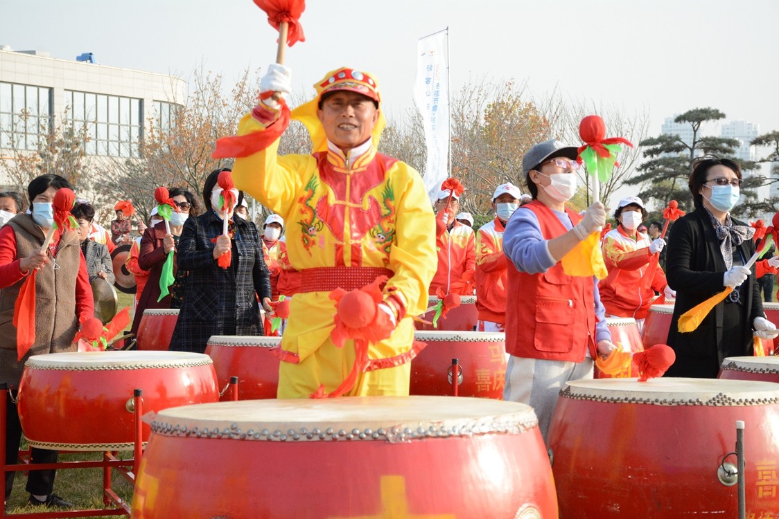 为在全省冬季旅游方面进一步挖掘潜力、提振信心、激活市场、拉动消费,11月8日在我市樱花湖体育广场举行了2020“冬游齐鲁·好客山东惠民季”启动仪式彩排,我馆组织大型渔家秧歌、渔民号子、渔家锣鼓“三渔文化”大型展演活动,志愿者们由来自全市的优秀秧歌、锣鼓表演志愿者组成,现场锣鼓声震撼全场,渔家秧歌彩绸纷纷,认真彩排,吸引众多群众前来观看。