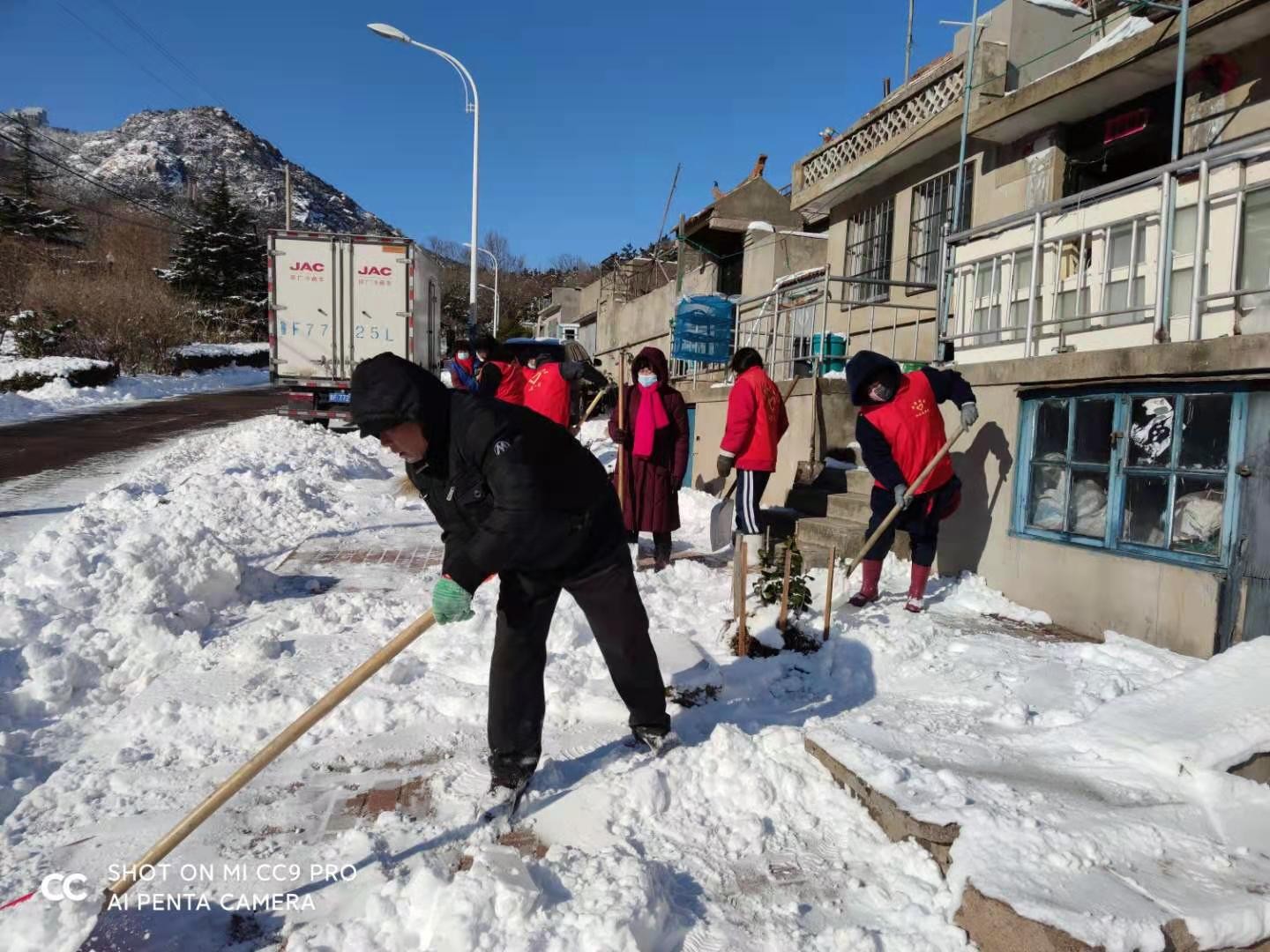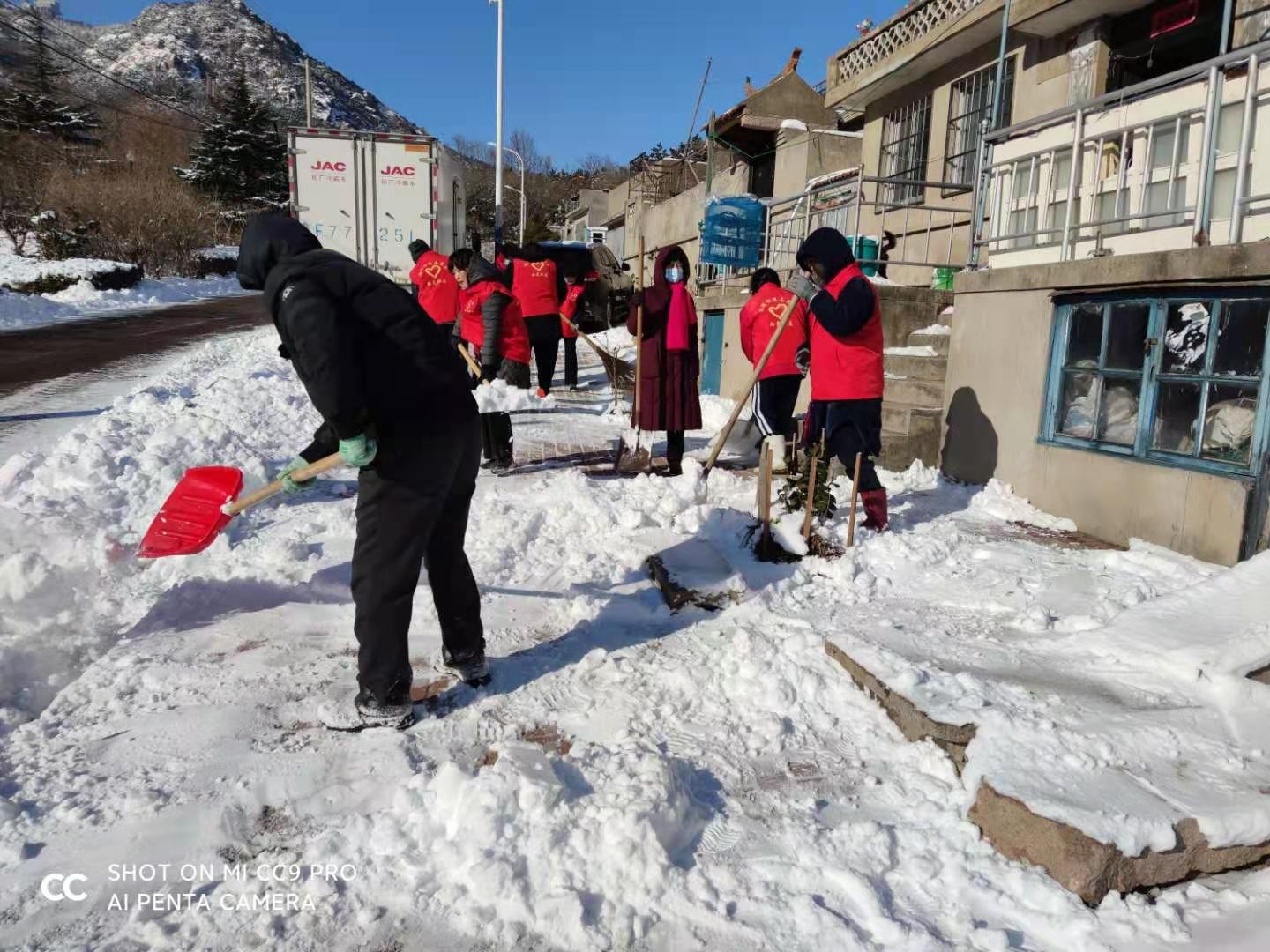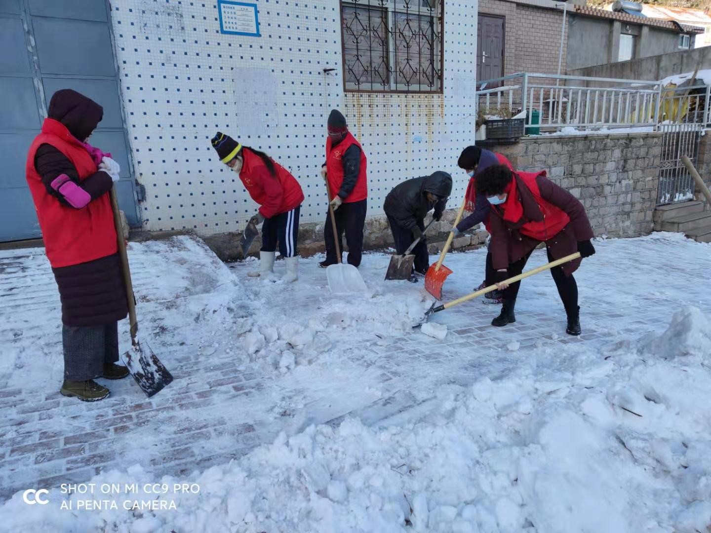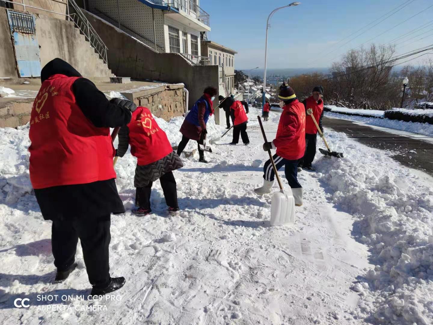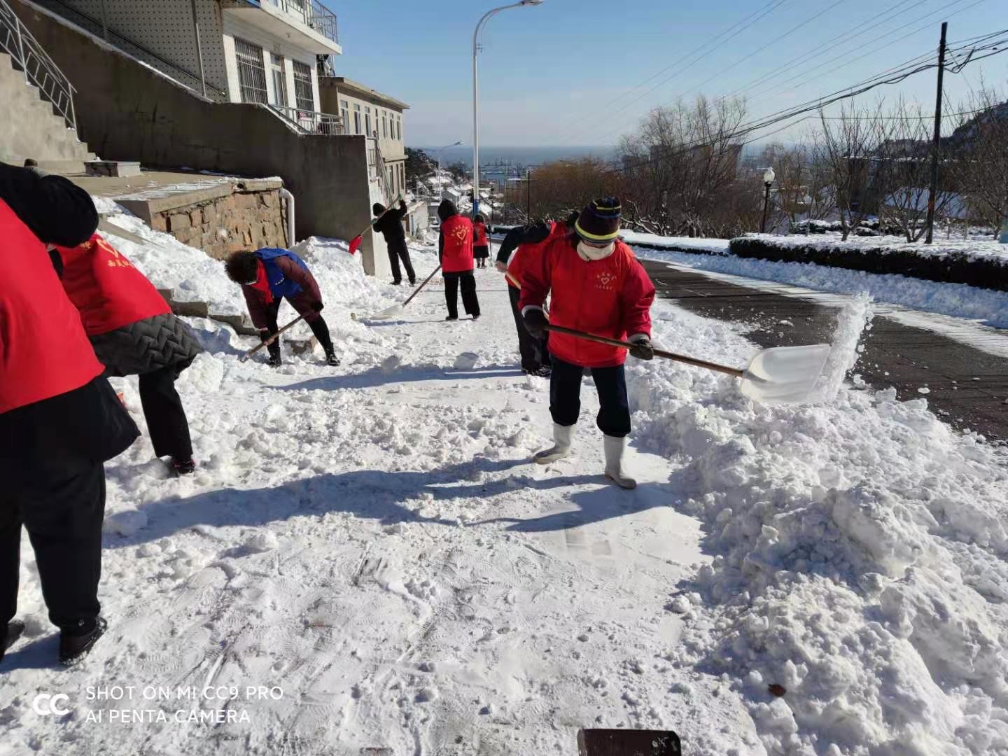 港湾街道西岚社区志愿者服务队扫雪除冰志愿活动