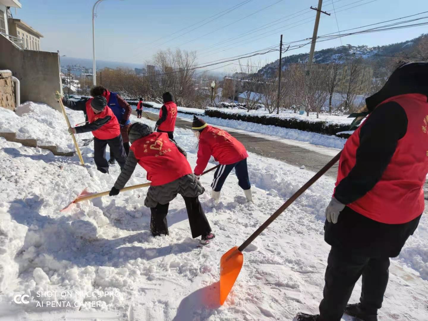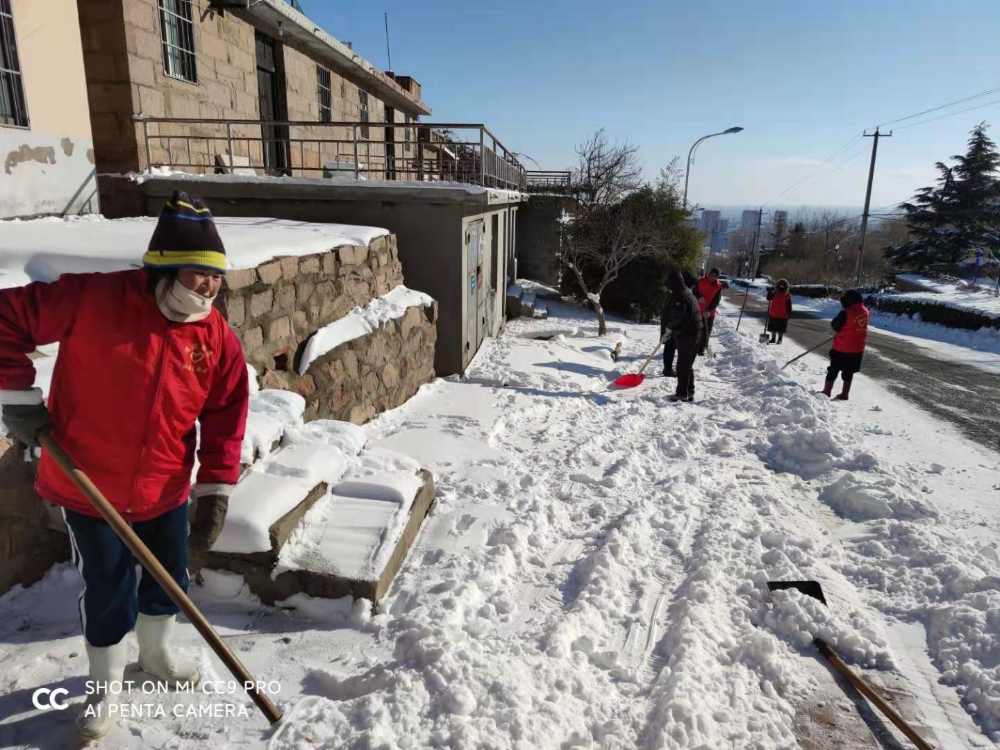 我市持续暴雪大风天气,为了防止积雪堆积在路面将严重影响车辆行驶和居民出行。西岚社区志愿者自带铁锨对路面进行清扫,大家齐心协力把道路清扫得干干净净,保障道路通畅,保证了居民的正常安全出行。