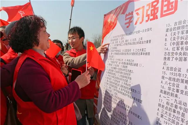 近日,在崂山街道滨海公园广场一隅,一块写着“学习强国党史知识答题区”的展板格外显眼。在这里,一场别开生面的“学习强国”党史知识答题竞赛活动正在举行。“确立毛泽东思想为党的指导思想是中共七大……”“最早提出‘中国共产党’称谓的是蔡和森!”这场“搬到现实”里的党史答题竞赛活动,引得辖区机关党员干部和群众纷纷参与其中,很是热闹。 据悉,该竞赛主要依托“学习强国”平台“党史学习教育”专项答题题库,题目内容设置与“四史”学习教育紧密贴合,助力荣成街道辖区党史学习教育深入开展,营造浓厚学习氛围。