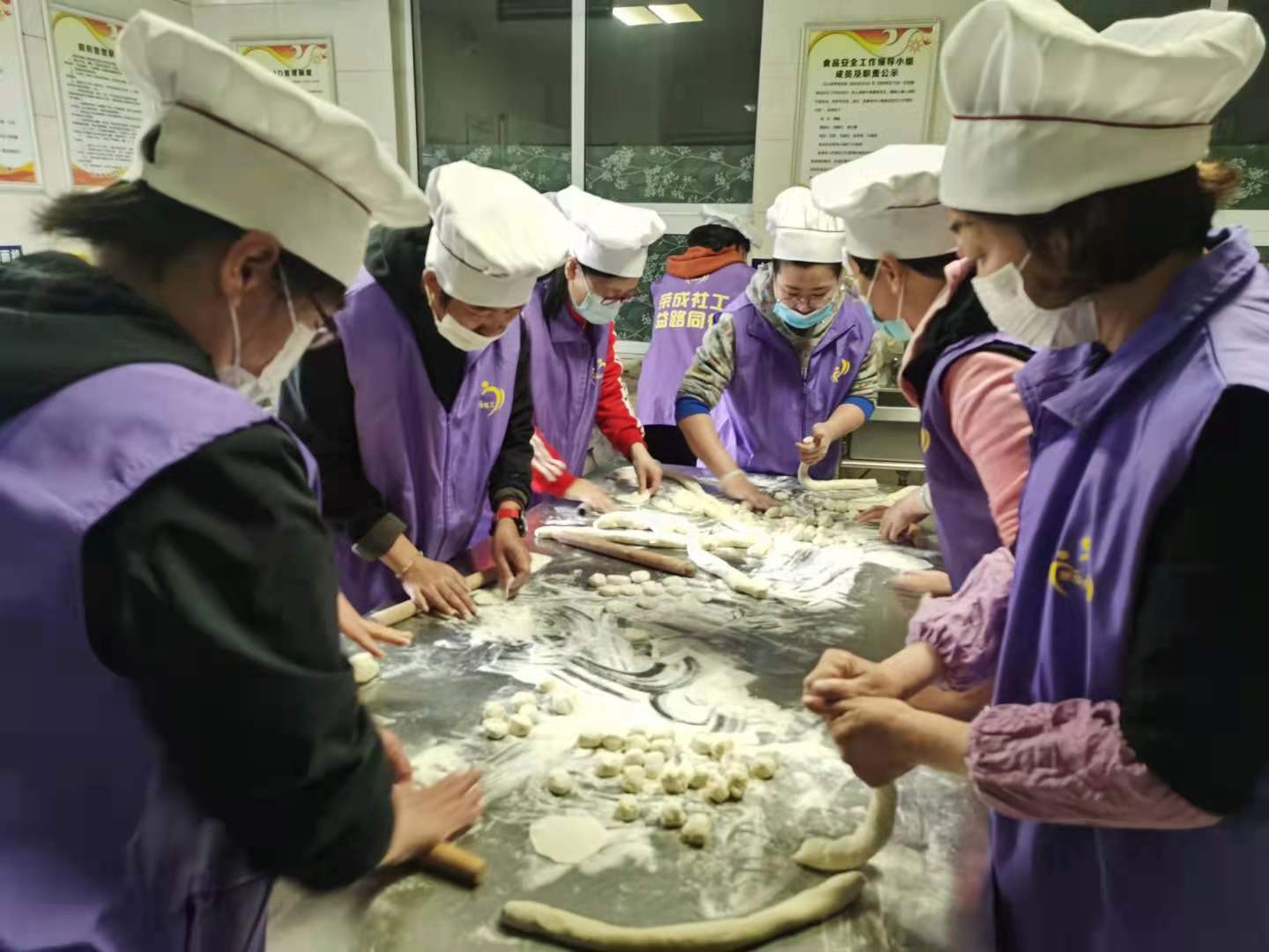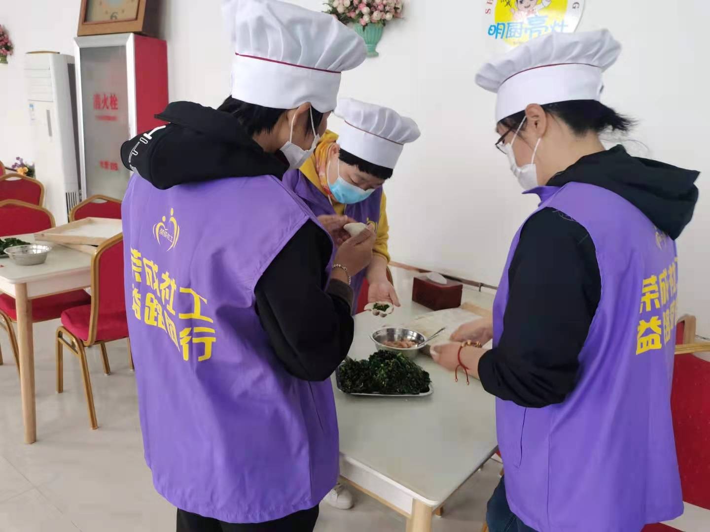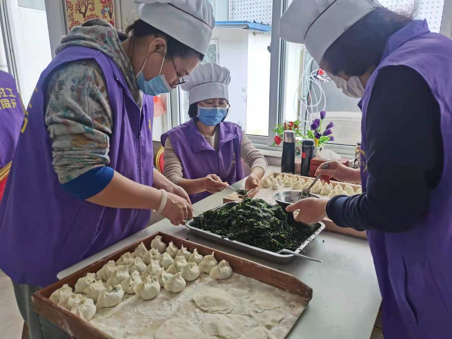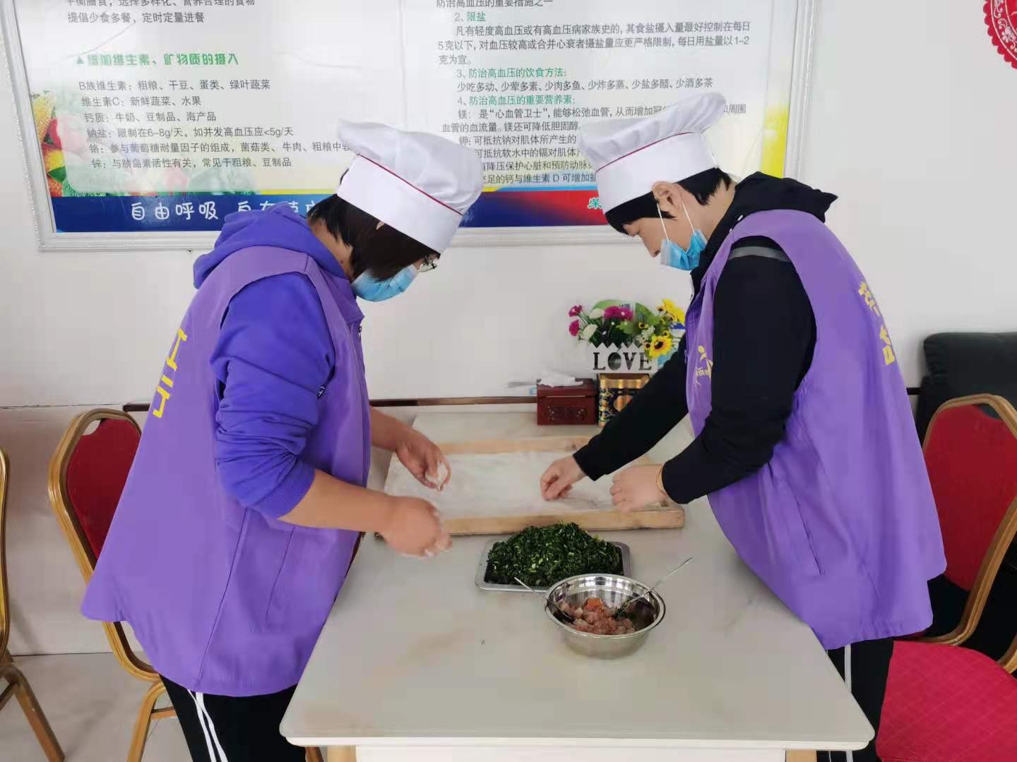 饺子是中华民族的传统美食,象征着喜庆和团圆;它不但是中国人逢年过节时的必备主食,也是老年人喜欢吃的食物。大鱼岛医康老年公寓入住了76位老人,单靠老年公寓里面的食堂工作人员,老人们吃上一顿饺子是很不容易的;为弘扬中华民族敬老、爱老、助老的传统美德,进一步倡导敬老、爱老,助老的新风尚,应大鱼岛医康老年公寓的邀请,港湾街道兴隆社区的志愿者走进医康老年公寓,帮助食堂为老人包饺子,让公寓的老人们能经常吃上可口的象征团圆、美满的饺子。