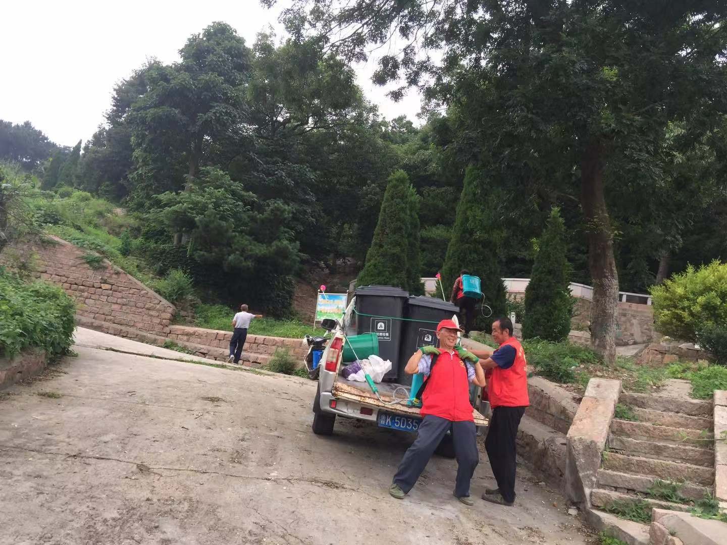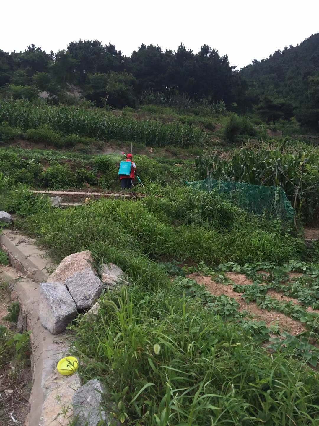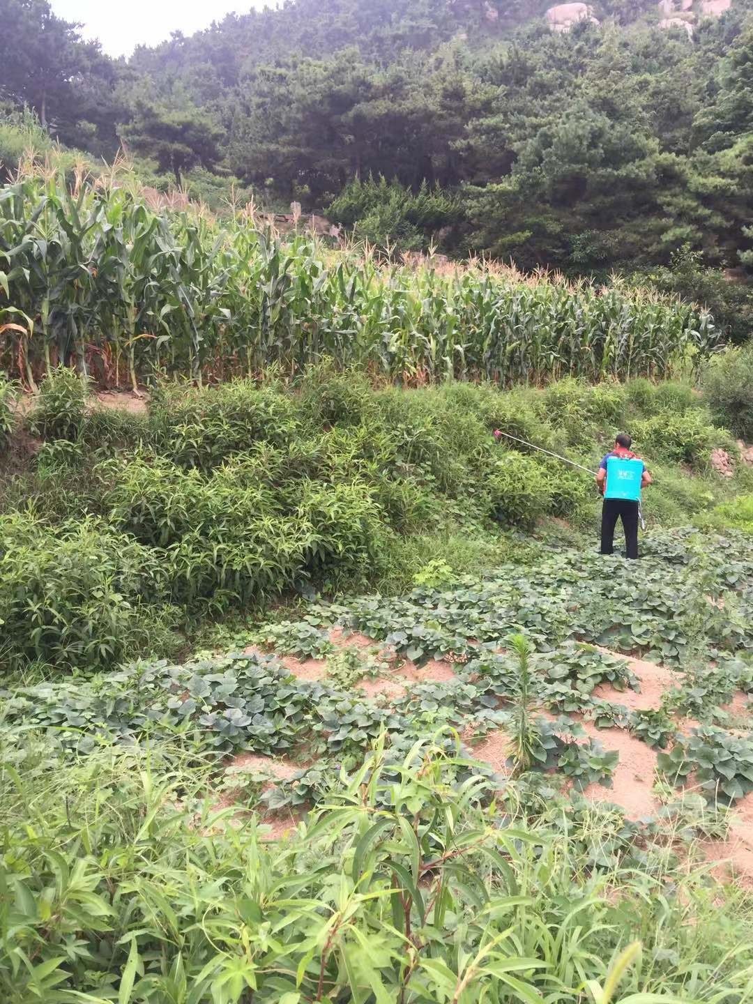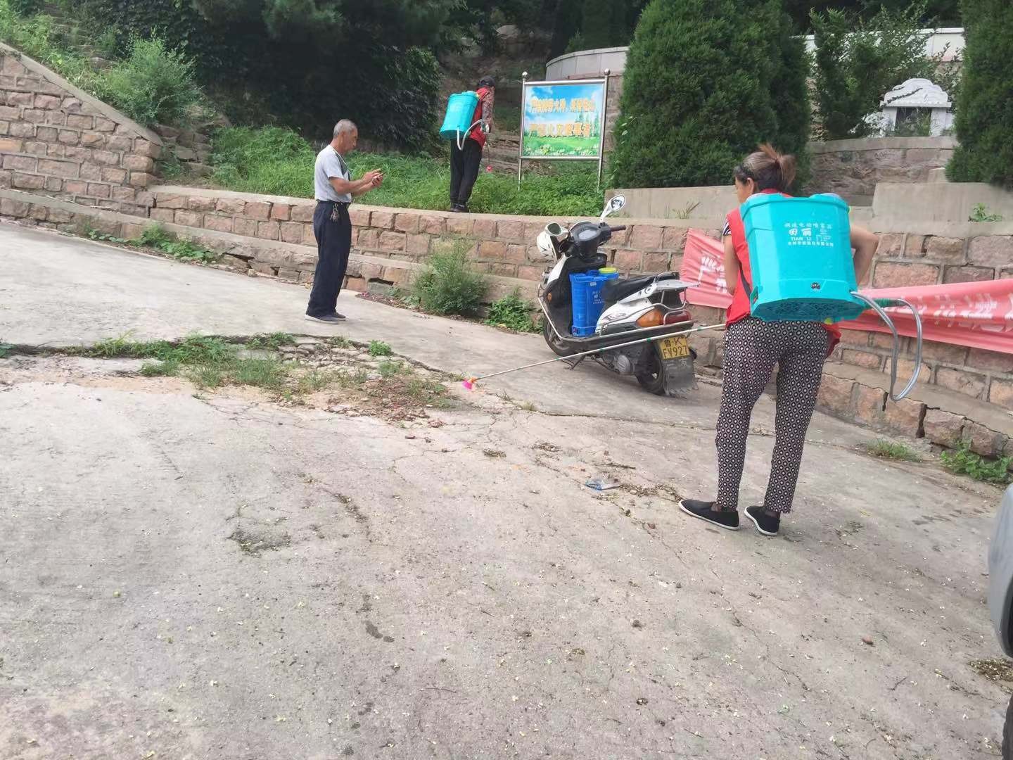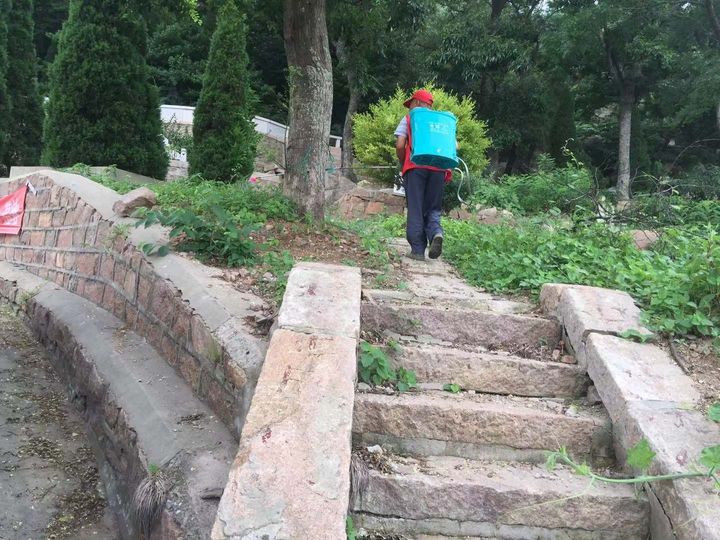 港湾街道石岛街社区于2021年8月3日,组织志愿者为石岛街社区南山勺里墓地喷洒除草剂。