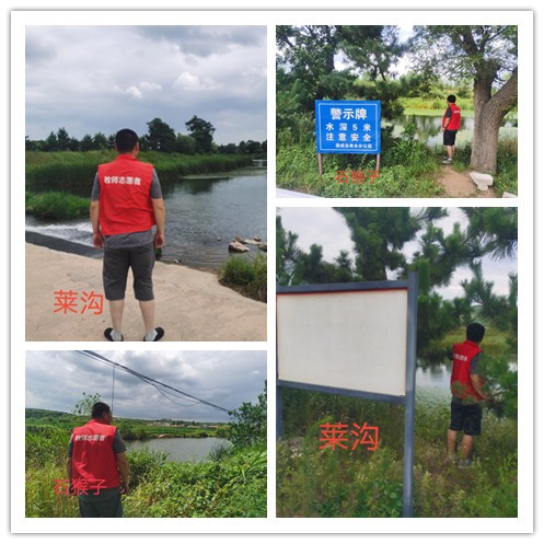 7月31日,海贝寻梦分队8名教师志愿者分成三组,对我校辖区内西片的水库、池塘等涉水区域进行巡查,查看相关水域警示牌有没有缺失,如有损坏或缺失,及时联系村里或者镇街补充和完善,保证所有水域都有明显的警示牌,确保最大限度避免悲剧的发生。